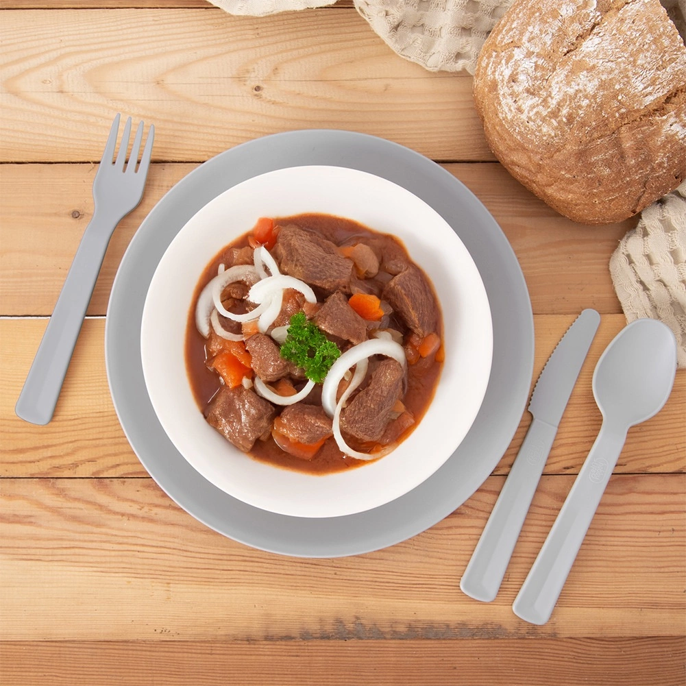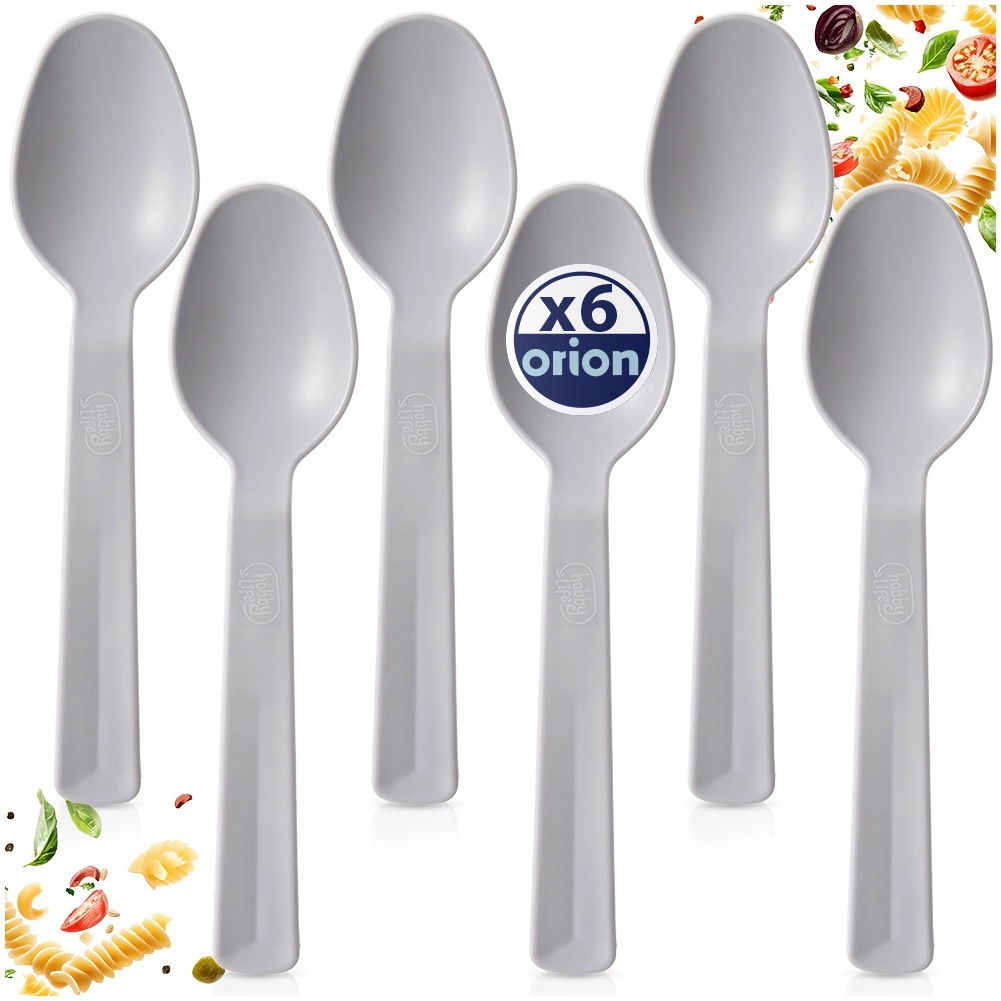 Set od 6 sivih plastičnih žlica idealan je izbor za svakodnevnu upotrebu i putovanja. Zahvaljujući kvalitetnoj izradi žlice su lagane, ali ujedno čvrste i otporne na pucanje i ogrebotine. Ergonomski oblik osigurava udobno zahvaćanje juha, deserata i priloga.