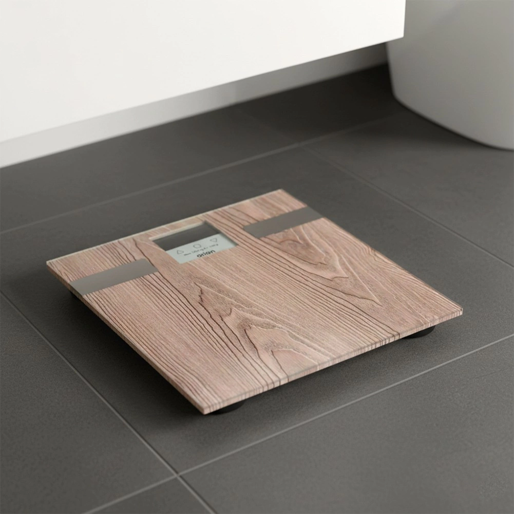Elegantna vaga s površinom u dekoru drva izvrsno se uklapa u modernu kupaonicu, spavaću sobu ili kućnu teretanu. Izdržljivo staklo, nizak profil i protuklizne nožice osiguravaju stabilnost i udobnost pri korištenju. Precizni senzori pružaju pouzdane rezultate pri svakom mjerenju.