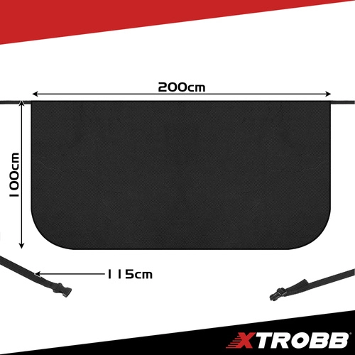 Praktična antimrazna zaštita XTROBB dimenzija 200 × 100 cm štiti vjetrobransko staklo od leda, snijega i inja. Zahvaljujući vodootpornom i otpornom na mraz materijalu ne lijepi se za staklo, brzo je skinete bez struganja i štedite vrijeme i staklo bez ogrebotina od strugača. Podesivi remen s kopčom i pričvršćivanje preko vrata stabiliziraju zaštitu i na vjetru – idealno za SUV, kombi i bus.