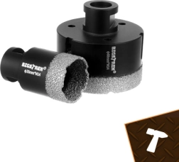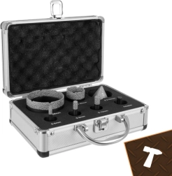 Set BIGSTREN idealan je za instalatere, keramičare i zahtjevne hobi majstore. Vakuumski lemljeni dijamanti i 15 mm visoki dijamantni radni sloj osiguravaju čiste rubove bez pucanja, veliku brzinu i stabilnost reza. Kod manjih promjera integriran je rashladni vosak, a kod većih ventilacijski otvori za smanjenje pregrijavanja i dulji vijek alata.