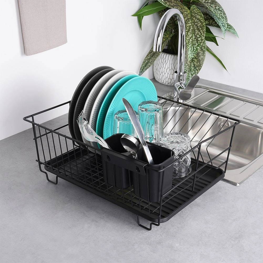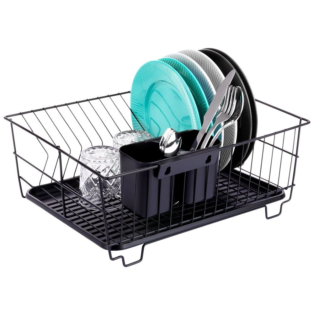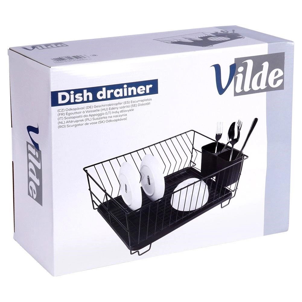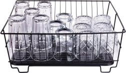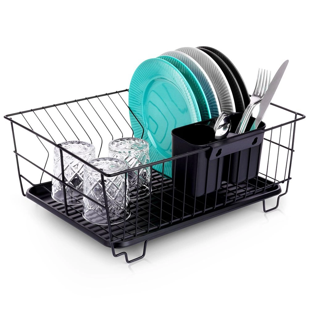 Stilski i funkcionalan ocjedivač za posuđe od izdržljivog metala u mat crnoj boji spaja moderan loft dizajn s praktičnošću za svaki dan. Pruža namjenske utore za do 15 tanjura i dovoljno prostora za čaše, zdjele i veće komade posuđa. Uklonjiva plastična ocjedna kada zadržava vodu i održava radnu plohu suhom.