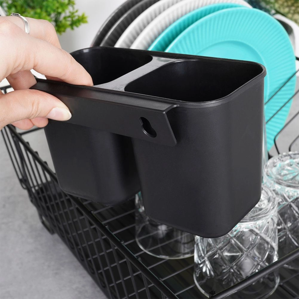 Dvokomorna, odvojiva posudica za pribor može se objesiti s unutarnje ili vanjske strane sušila prema potrebi, čime se povećava kapacitet za čaše ili šalice. Zahvaljujući promišljenoj konstrukciji ocjedivač je lagan za čišćenje i može poslužiti i kao komorni sušač u sudoperu.