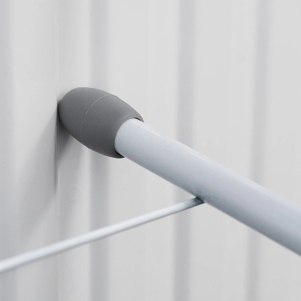 Montaža je brza i bez alata – dovoljno je objesiti pomoću čvrstih plastičnih kuka. Nakon upotrebe sušilo se sklapa u ravan oblik i lako sprema u ormar ili ladicu. Izdržljiva metalna konstrukcija u bijeloj boji i sivi prihvati osiguravaju stabilnost i dugotrajnost.