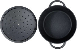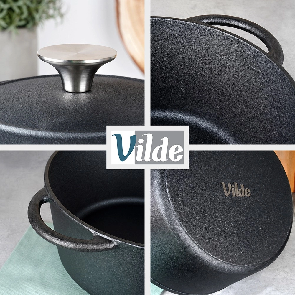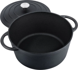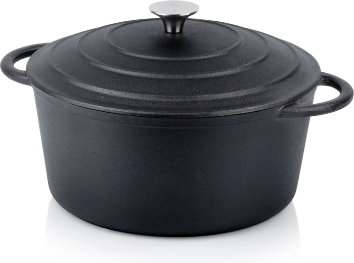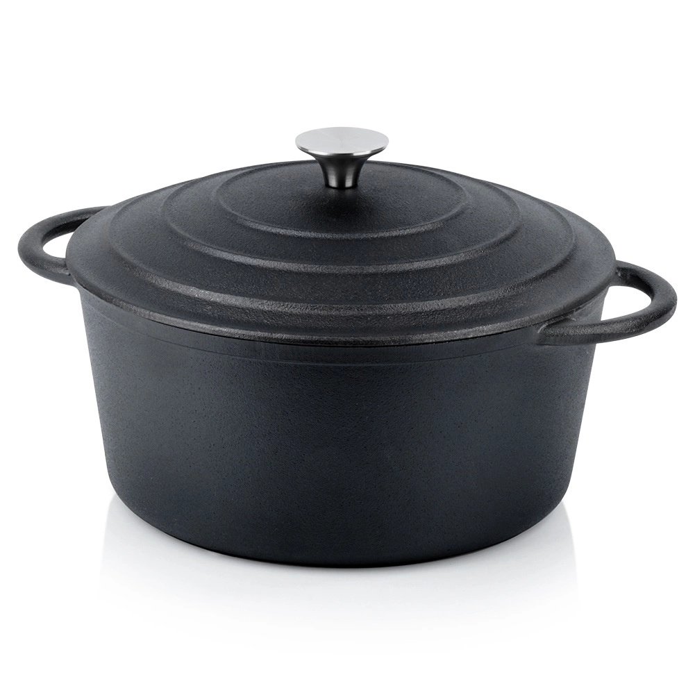 Tijelo i poklopac od masivnog lijevanog željeza osiguravaju ravnomjerno zagrijavanje i dugotrajno zadržavanje temperature – idealno za sočna pečenja, gulaše i pirjana jela.