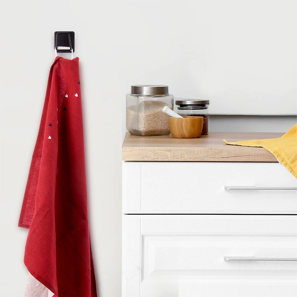 Univerzalne samoljepljive kukice u elegantnoj crnoj boji za kuhinju i kupaonicu. Zahvaljujući traci 3M drže čvrsto bez bušenja, jednostavne su za ugradnju i izvrsne za ručnike, kuhinjske krpe, spužvice i odjeću. Kompaktne dimenzije i moderan dizajn uklopit će se u svaki interijer.