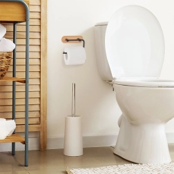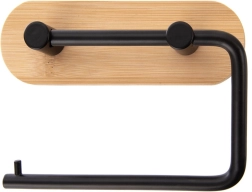 Elegantan držač za toaletni papir donosi čist dizajn i praktičnost u svaku kupaonicu. Metalna ruka u crnoj boji i bambusna podloga izvrsno se uklapaju u moderne interijere, a istovremeno jamče izdržljivost i dug vijek trajanja. Zahvaljujući promišljenom obliku, zamjena role je brza i udobna.