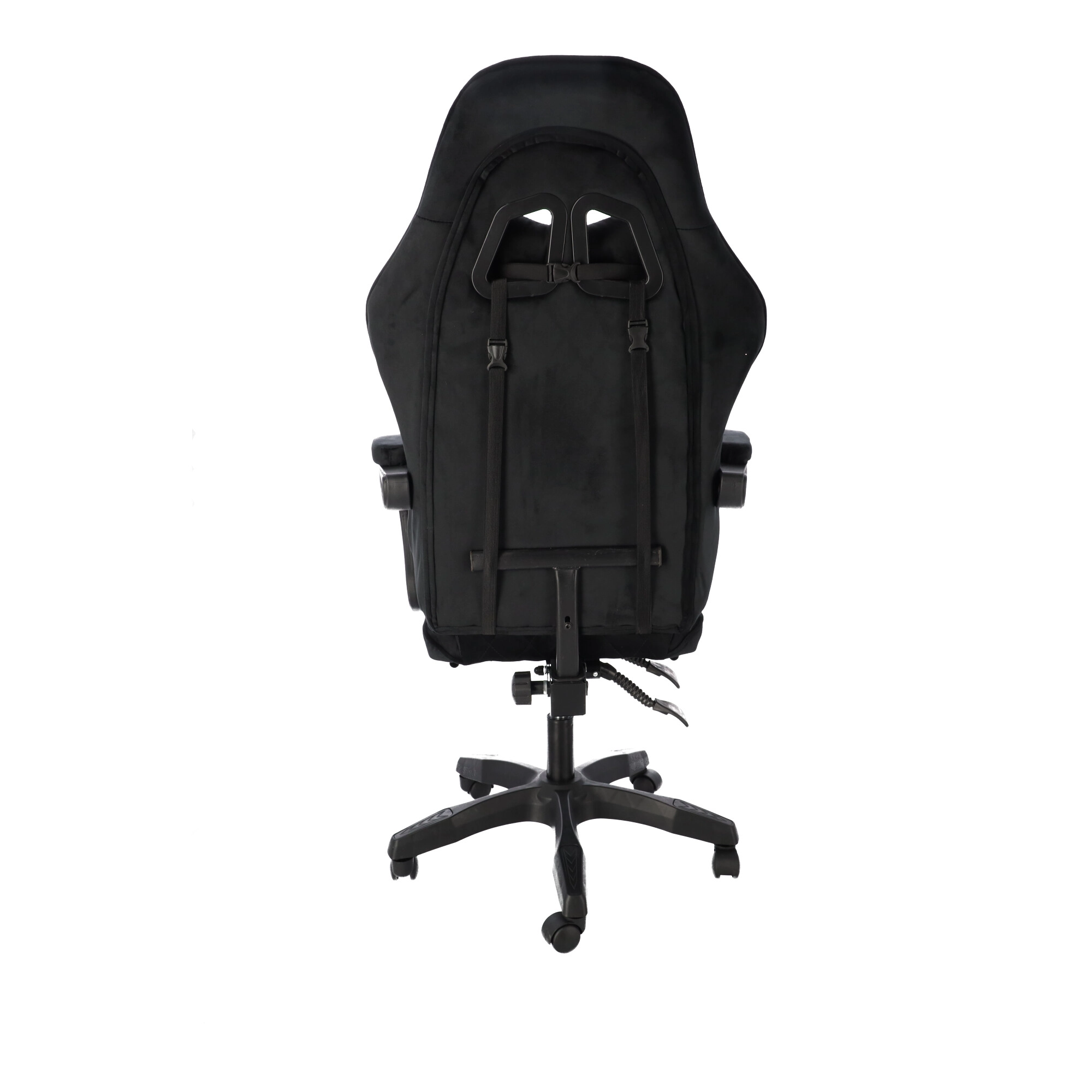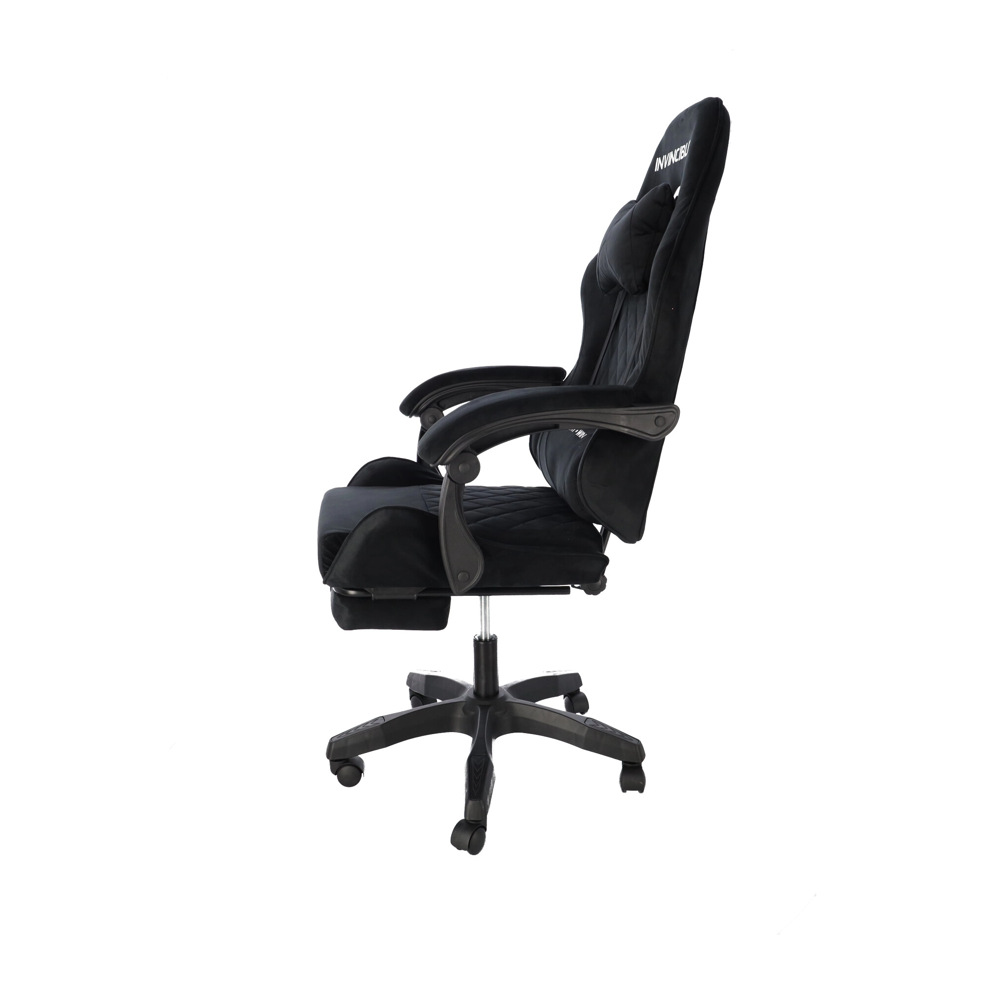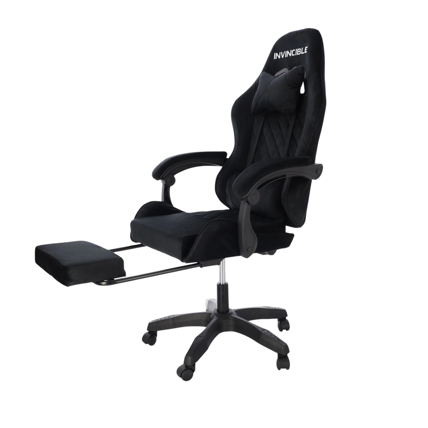Stilska gaming stolica s presvlakom od crnog velura spaja udobnost i elegantan izgled. Ergonomski oblikovan naslon, jastuk za vrat i lumbalna potpora podupiru pravilno držanje tijela. Zahvaljujući podešavanju visine, nagibu do 145°, okretanju za 360° i izvlačivom osloncu za noge lako ćete pronaći idealan položaj za igranje, rad i odmor. Stabilna petokraka baza na kotačićima osigurava glatko kretanje i nosivost 130 kg.