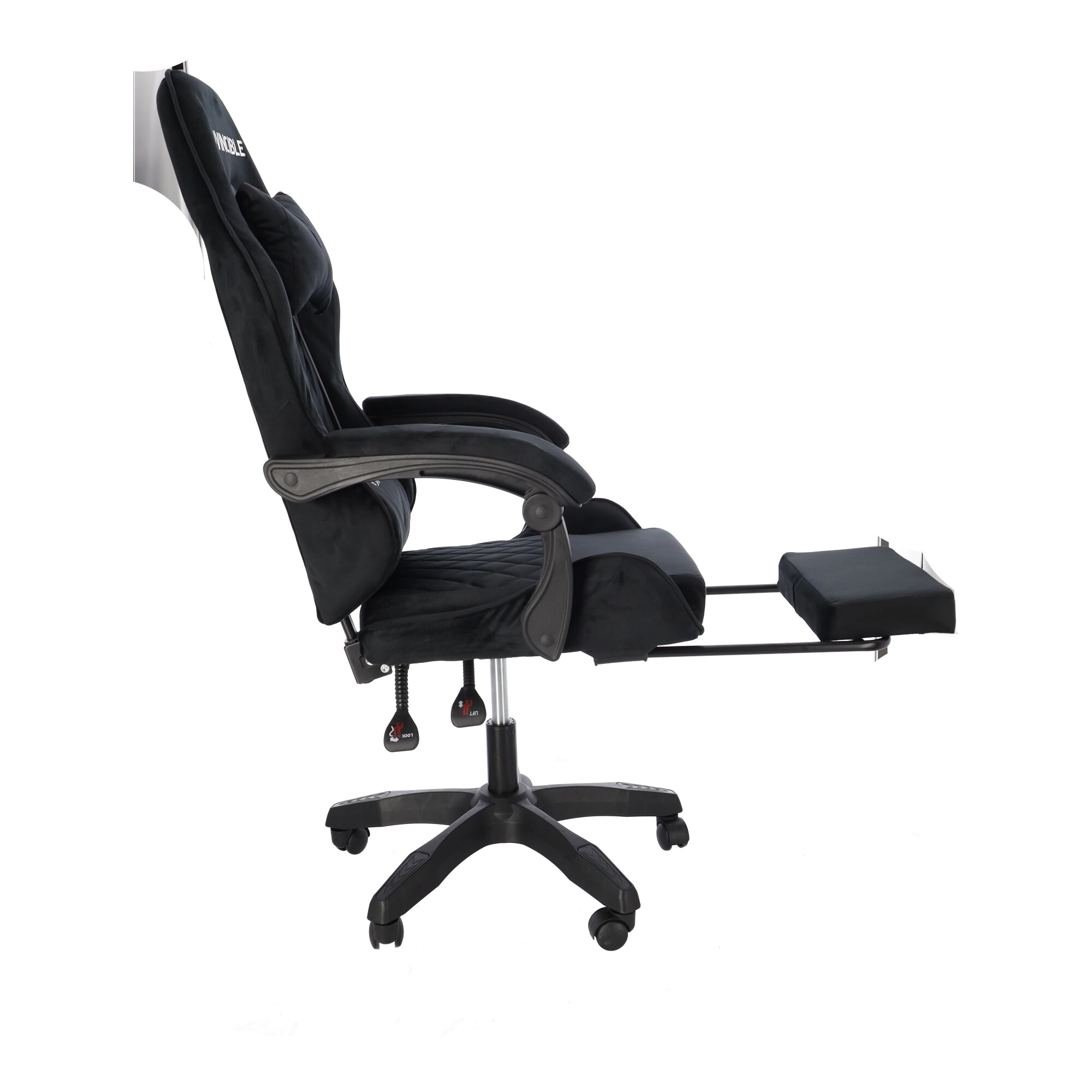 Praktična oprema uključuje glatko podešavanje visine sjedala, mehanizam za njihanje s blokadom i nagib naslona do 145° za brzi odmor. Izvlačni oslonac za noge podupire cijelo tijelo pri gledanju filmova ili tijekom pauze između mečeva. Petokraki križ s kotačićima jamči stabilnost i lako pomicanje za stolom.