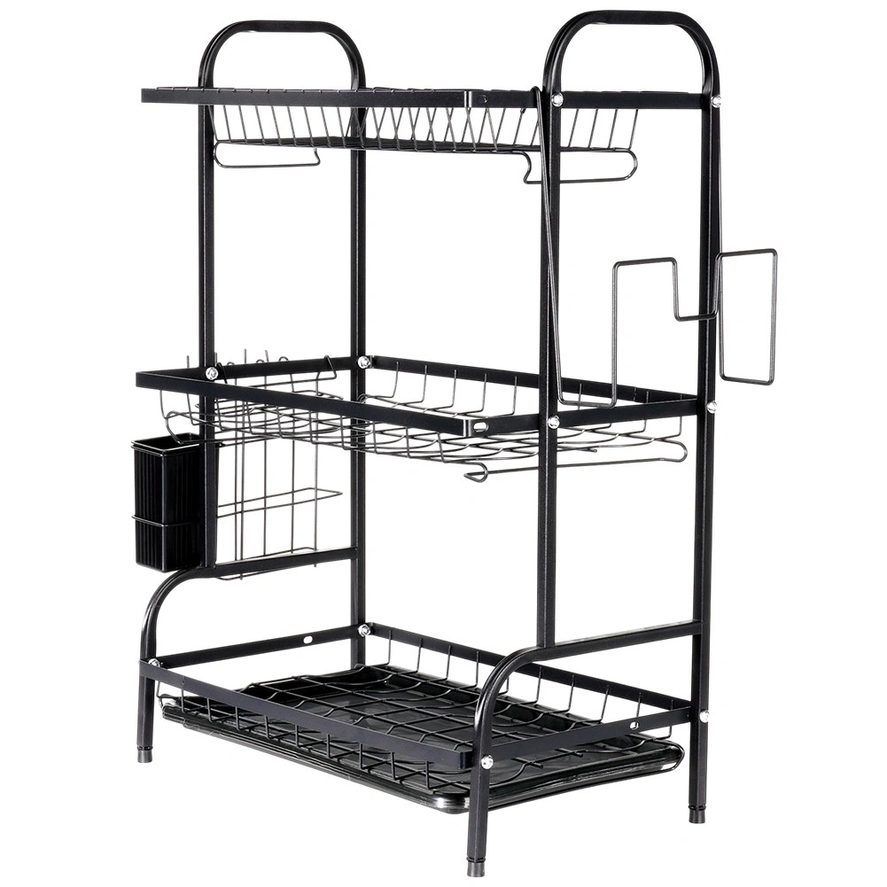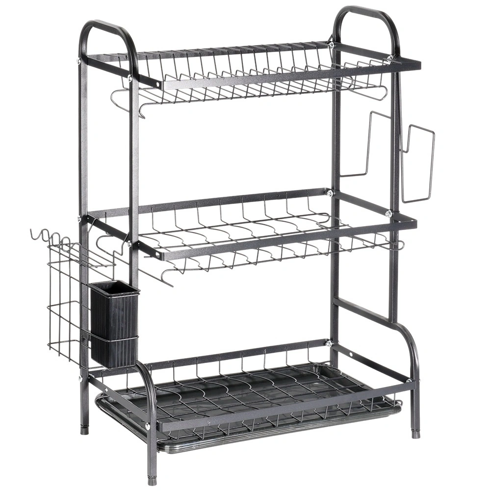 Metalno ocjedalo za posuđe, crno, trokatno 54,5 × 24,5 × 60 cm