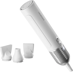 U pakiranju se nalaze 3 nastavka: široki plosnati za velike površine, klasični plosnati za brzo dosušivanje i okrugli za volumen i teško dostupna mjesta (šape, područje oko ušiju). Fen teži samo 550 g, dug je 28,8 cm i ima mekane dodirne kontrole, magnetski filtar za lako čišćenje i 2 m kabel za udobno rukovanje.