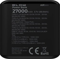 Ova univerzalna power banka kapaciteta 27.000 mAh isporučuje do 140 W, pa brzo puni ne samo pametne telefone nego i zahtjevnije uređaje, uključujući neke prijenosnike. Zahvaljujući standardima PD, QC 3.0 i SCP skraćujete vrijeme punjenja na minimum te imate energiju pri ruci bilo kad i bilo gdje.