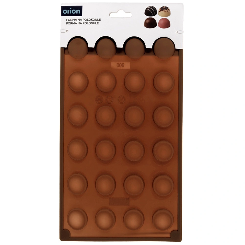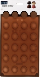 Praktičan silikonski kalup za jednostavnu izradu do 24 savršeno okruglih pralina i čokoladica. Zahvaljujući neprianjajućem i fleksibilnom silikonu gotove komade lako ćete izvaditi bez oštećenja. Kalup je toplinski otporan od −40 °C do +200 °C, prikladan za pećnicu, mikrovalnu i zamrzivač te se može prati u perilici posuđa.