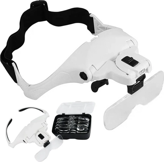 Konstrukcija od ABS plastike i akrilnih leća izdržljiva je, a istovremeno udobna za dulju uporabu. Podešavanje nagiba naočala, leća i svjetla osigurava ergonomiju i precizno usmjeravanje. Napajanje standardnim AAA baterijama omogućuje mobilnu uporabu bilo gdje.