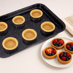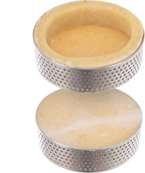 Otkrijte jednostavnu pripremu savršeno oblikovanih tartleta – slatkih i slanih. Perforirane stijenke obruča učinkovito odvode paru, pa se tijesto peče ravnomjerno i ostaje lijepo hrskavo. Glatka površina olakšava skidanje nakon pečenja, a podloge se peku izravno na papiru za pečenje ili silikonskoj podlozi.