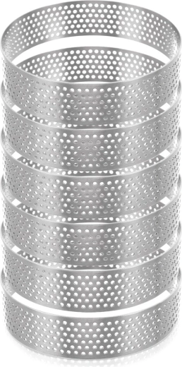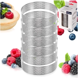 Obruči su izrađeni od izdržljivog nehrđajućeg čelika koji dobro podnosi visoke temperature i jamči dug vijek trajanja. Svaki obruč ima promjer 8 cm i visinu 2 cm – idealne dimenzije za elegantne mini deserte, tartlete s kremom, voćem ili slane pitice.