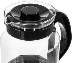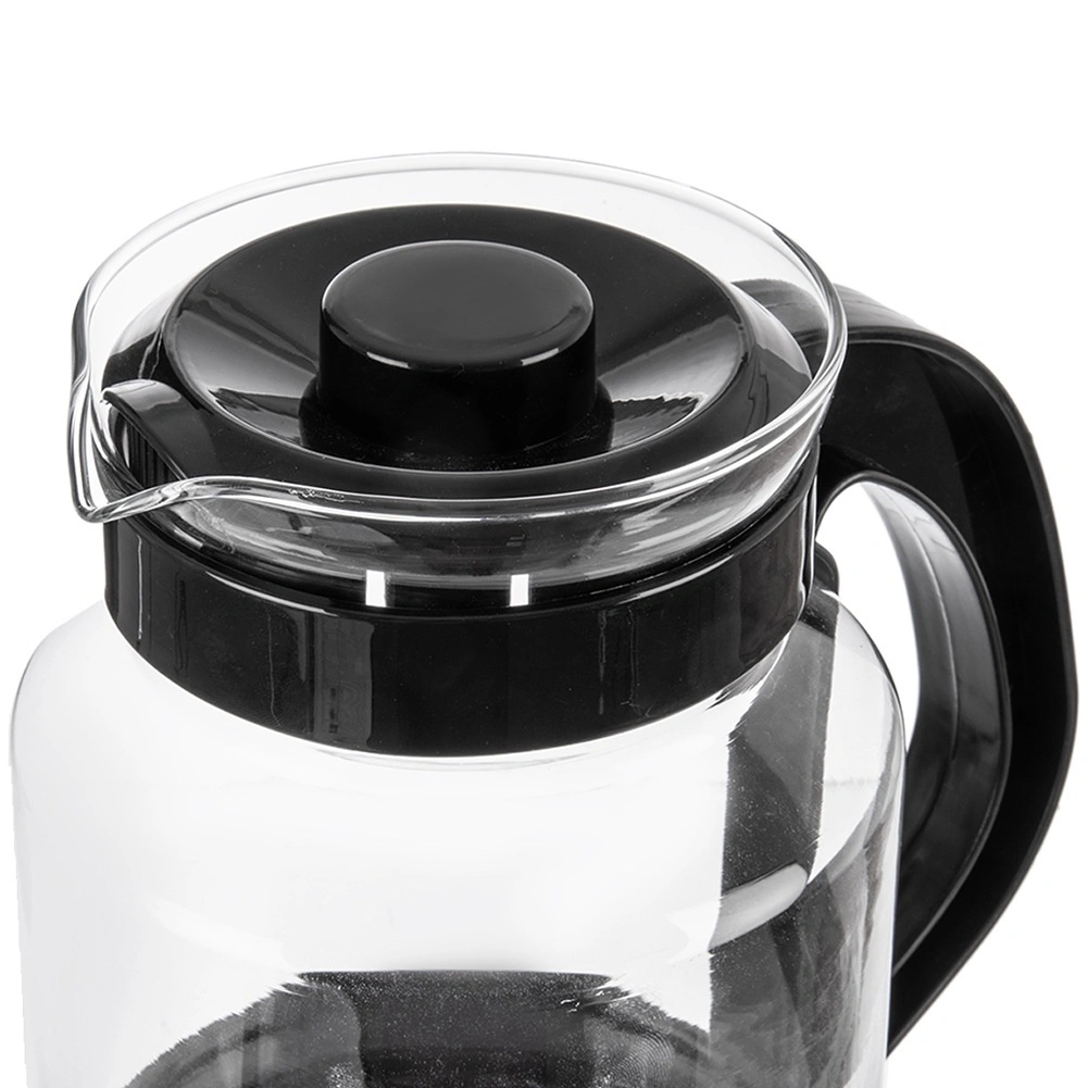 Vrč je izrađen od borosilikatnog stakla otpornog na visoke temperature, nadopunjen udobnom plastičnom ručkom i poklopcem u crnoj boji. Zahvaljujući promišljenom izljevom, točenje je glatko i bez kapanja, a ergonomska ručka osigurava siguran hvat bez rizika od opeklina.