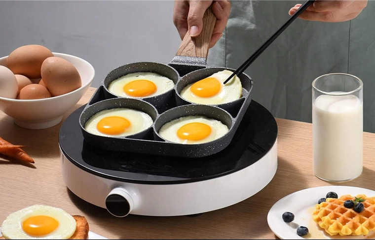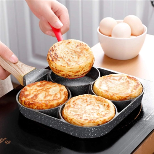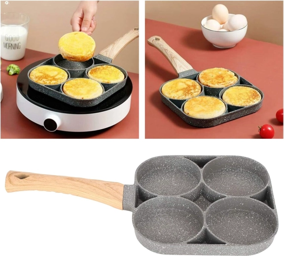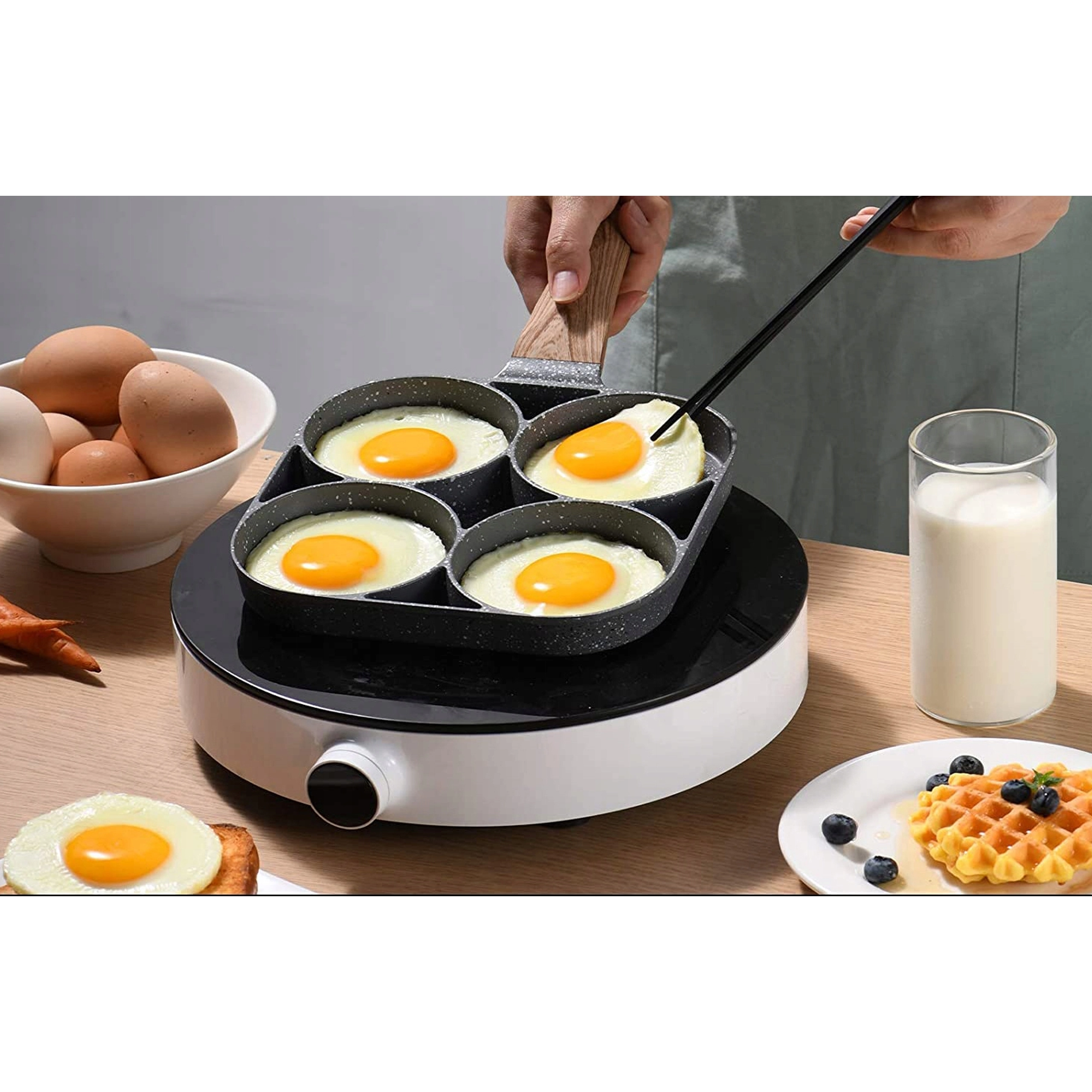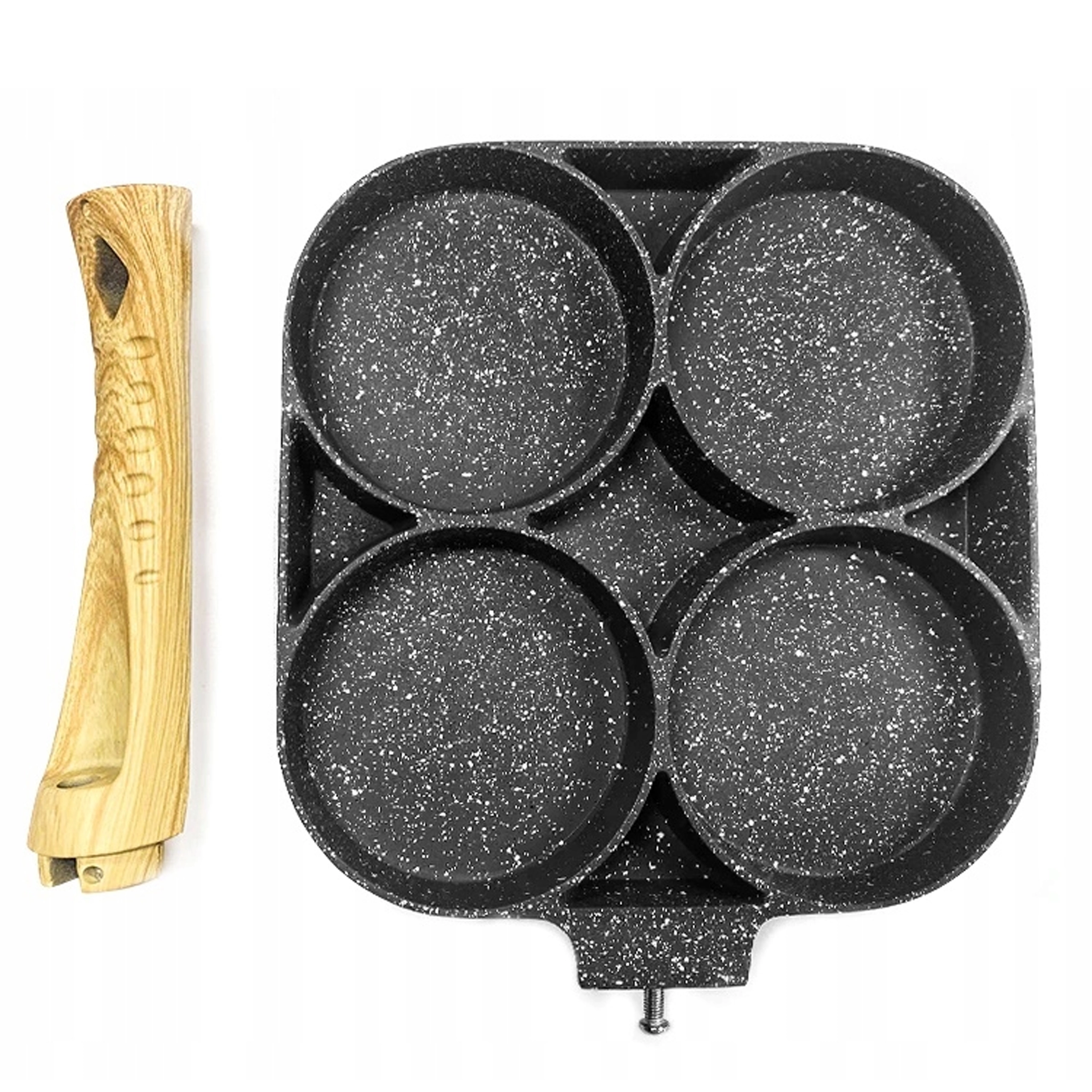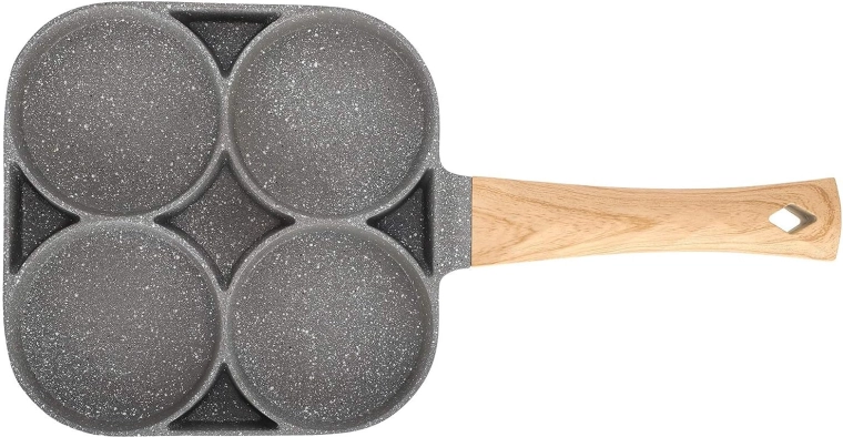 Ova četverodijelna tava idealna je za brzu i uravnoteženu pripremu doručka i međuobroka. Odvojene komore održavaju porcije lijepo okruglima i ujednačenima, dok točkasta neljepljiva površina omogućuje lako okretanje bez zagaranja i jednostavno čišćenje.