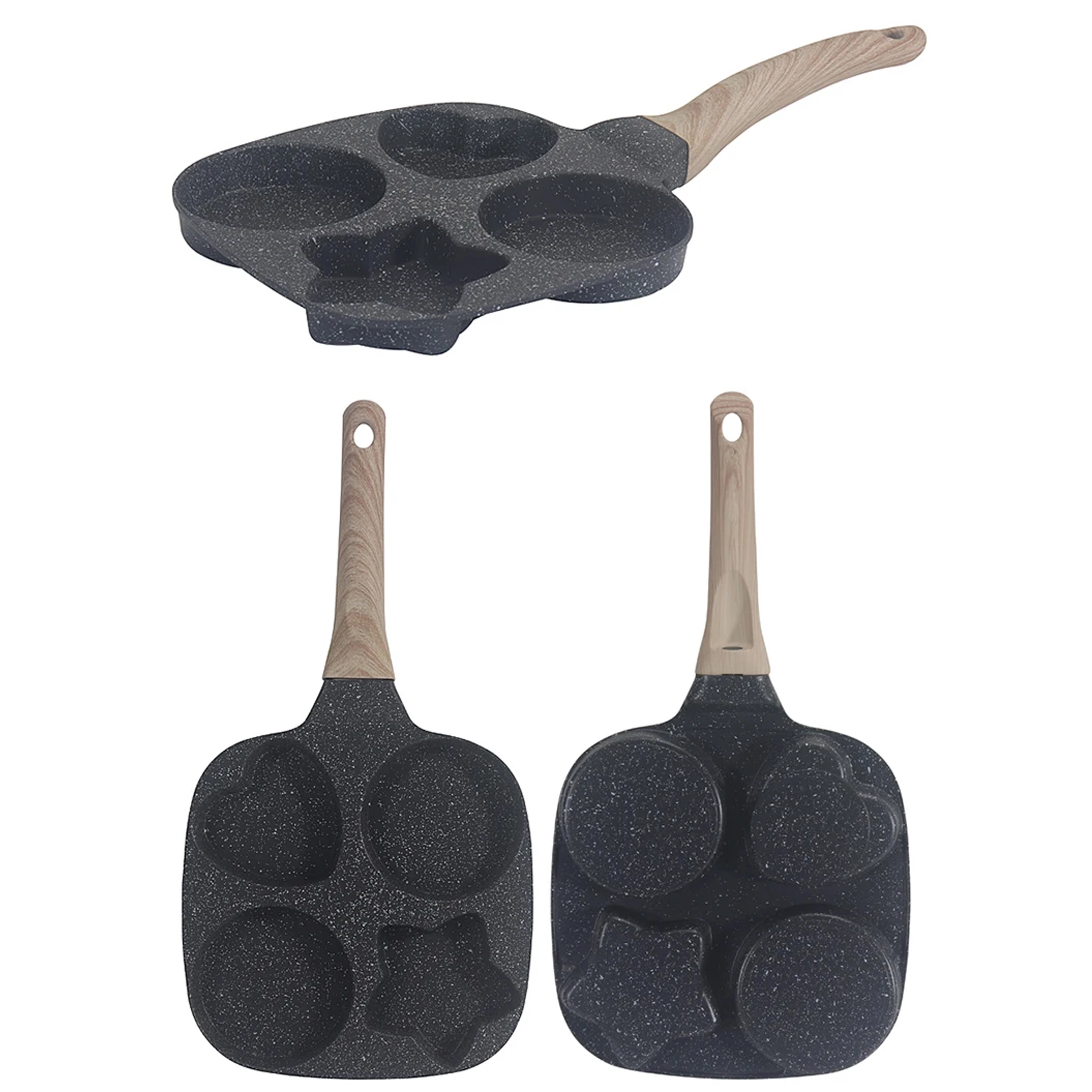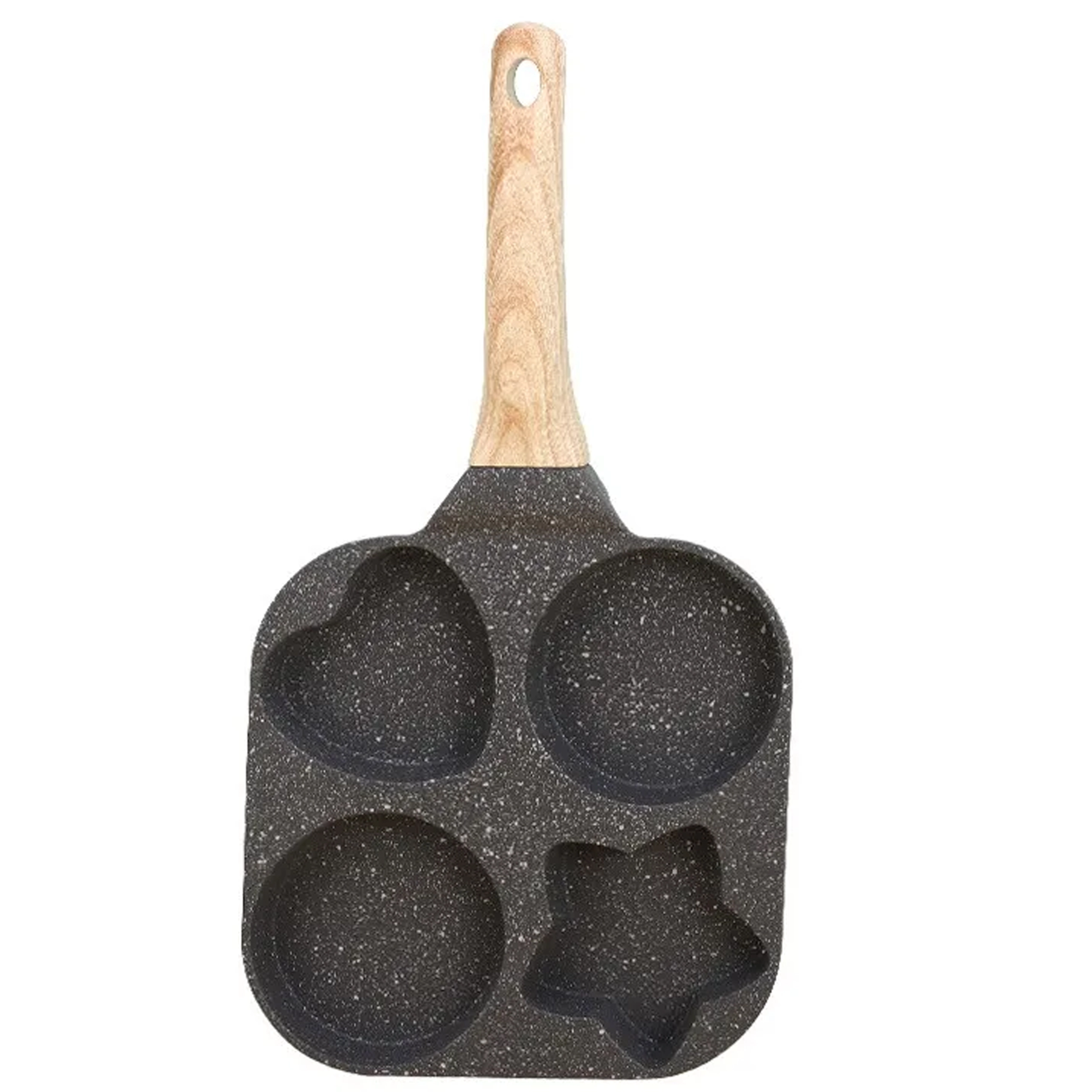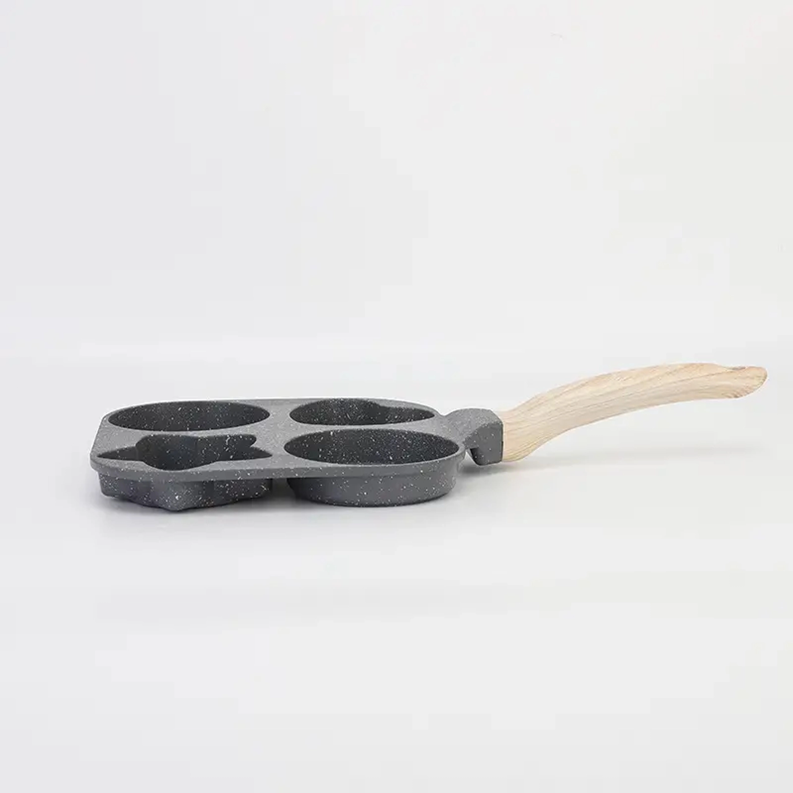 Ova praktična tava s četiri udubljena kalupa omogućuje pripremu više porcija odjednom – idealno za jaja, palačinke, popečke od krumpira ili male ploškice. Oblikovane sekcije (2× okrugla, 1× srce, 1× zvijezda) stvaraju zabavne i ravnomjerne porcije koje će razveseliti djecu i odrasle.