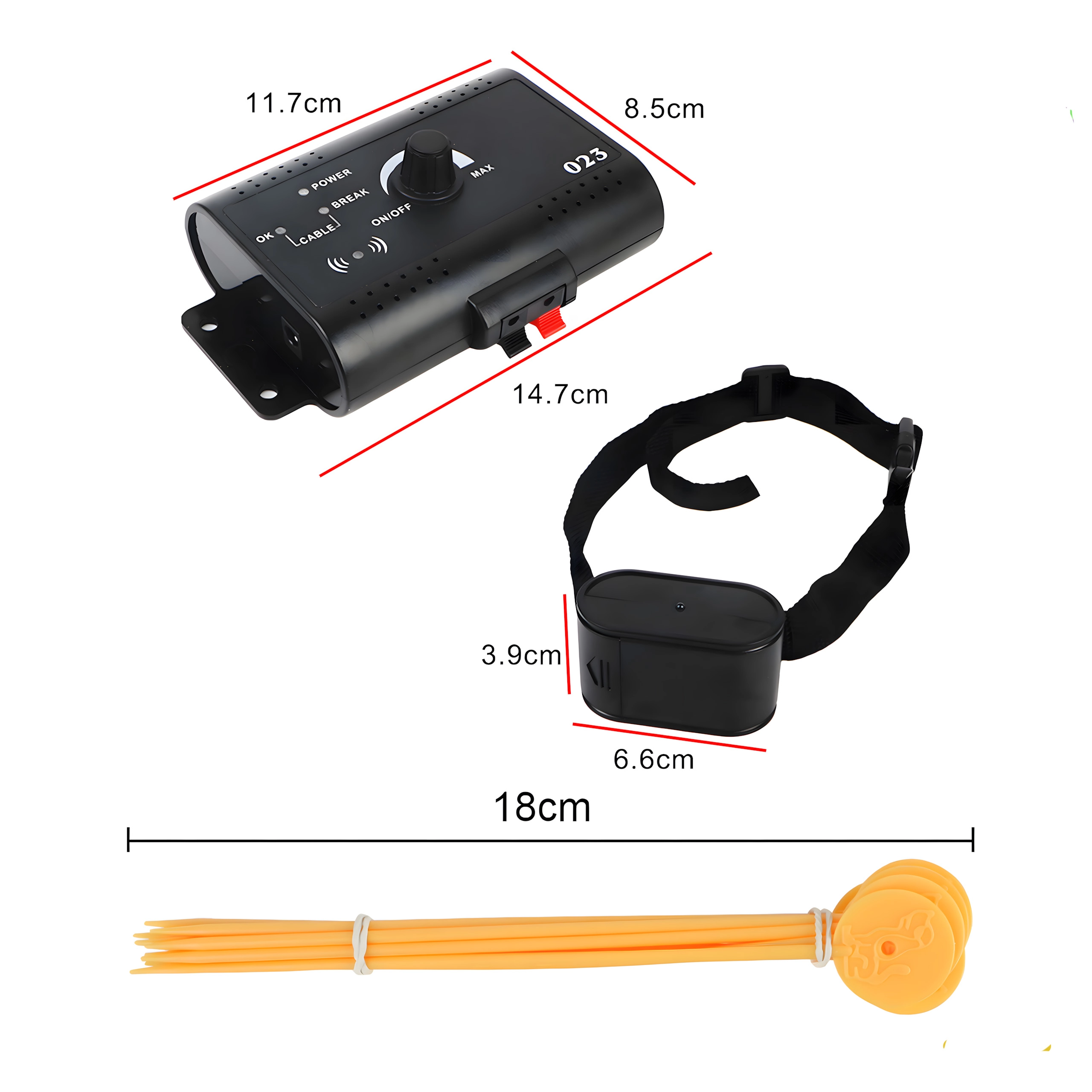 Instalacija je pregledna: odredite trasu, položite ili plitkim urezom ugradite vodič te postavite signalne zastavice za vizualni trening. Lagana, podesiva ogrlica udobna je za svakodnevno nošenje i otporna na uobičajenu vanjsku uporabu. Sustav je idealan za vrtove obiteljskih kuća i pomaže vam spriječiti bijeg te neželjeni ulazak u gredice.