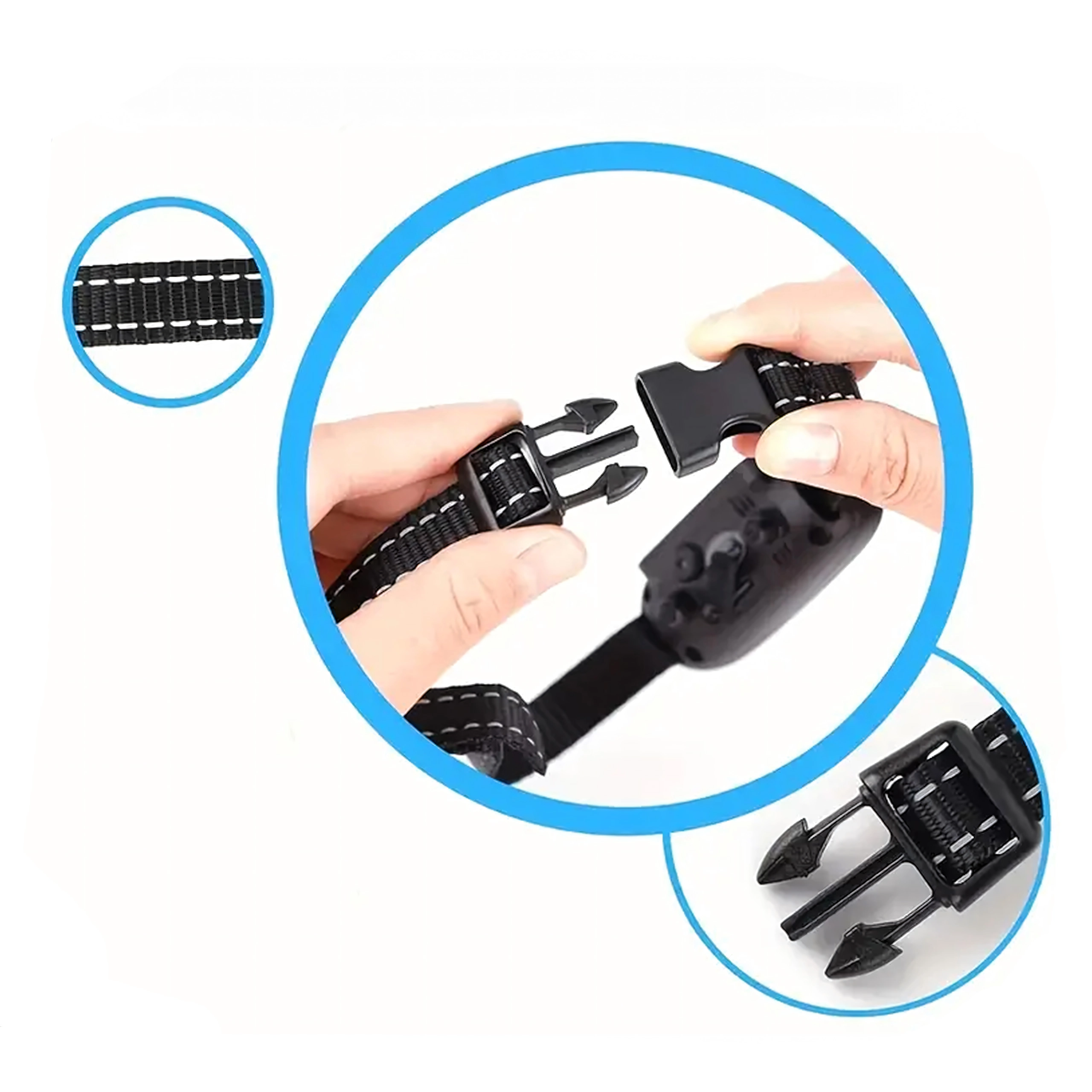 Izdržljiv najlonski remen s reflektirajućim prošivima lako se prilagođava za male i velike pse. Ogrlica je vodootporna, pa podnosi kišu i igru na travi. USB punjenje osigurava praktičnu upotrebu bez zamjene baterija.