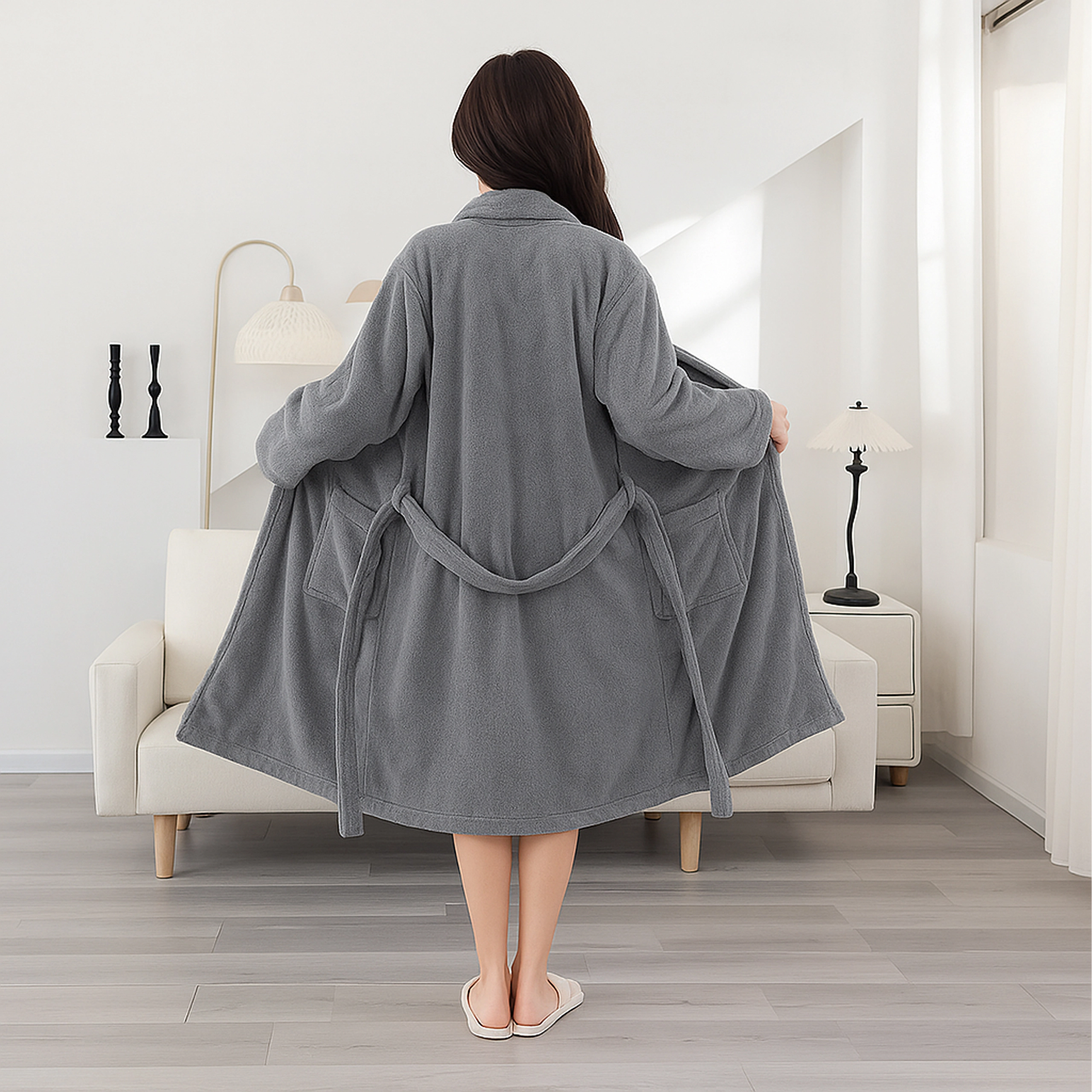 Plišani materijal pruža trenutačnu toplinu i baršunastu udobnost nakon kupanja i tijekom odmaranja.