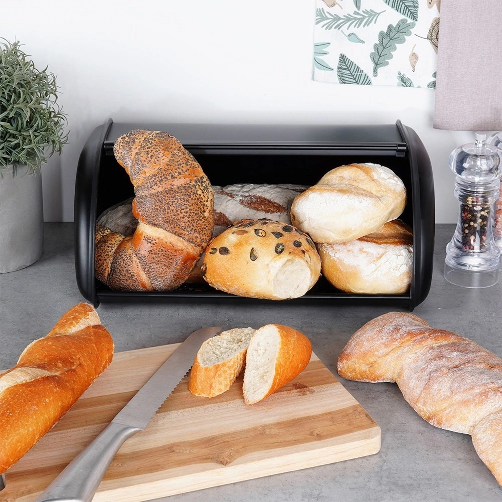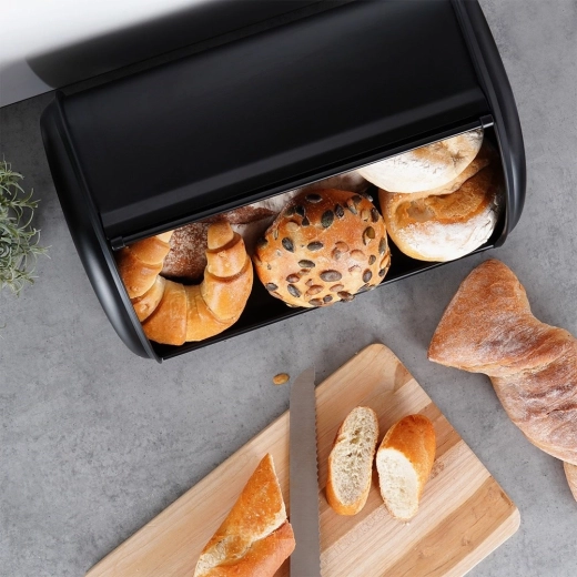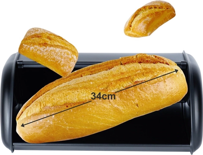Jednostavna svakodnevna upotreba osigurana je glatkim otvaranjem rolo-čelom koje štedi prostor na pultu. Metalno tijelo je stabilno i otporno na oštećenja, pa pecivo ostaje na sigurnom. Kutija je i praktično rješenje za organizaciju radne plohe – smanjuje nered i štiti pecivo od pristupa zraka.