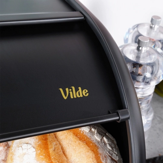 Elegantna kutija za kruh Vilde u crnoj boji izrađena je od lakiranog nehrđajućeg čelika koji pouzdano štiti sadržaj od isušivanja i prašine. Prostrana unutrašnjost prima kruh, kifle i slatko pecivo te ih dulje održava mirisnima i ukusnima. Mat završna obrada i zaobljene linije lako se uklapaju u moderne i klasične kuhinje.