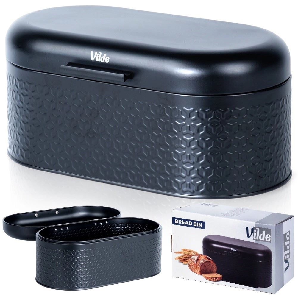 Stilsku čeličnu kutiju za kruh Vilde održava vaše pekarske proizvode dulje svježima. Zahvaljujući čvrstoj konstrukciji i dobro prianjajućem poklopcu učinkovito sprječava isušivanje i štiti od oštećenja. Kompaktna je, ali prostrana, dimenzija 34 × 20 × 15 cm, s elegantnom mat crnom izvedbom i dekorativnom teksturom.