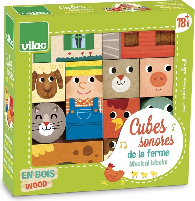Vilac Drvene zvučne kocke Farma su zabavne i edukativne igračke koje pomažu djeci razvijati motoričke vještine i otkrivati različite zvukove.