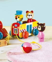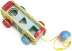 Ovaj vučni autobus izrađen je od kvalitetnog drva i nudi ne samo zabavu, već i izazov za male mislioce. Sa šarenim bojama i životinjicama koje se mogu stavljati i vaditi, potiče dječji razvoj u nekoliko područja: