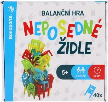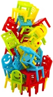 Neposlušne stolice su izvrsna balansna društvena igra za djecu od 5 godina koja nudi različite varijante igranja. Igra sadrži 32 plastične stoličice i 8 stolova za više igraćih mogućnosti. Igranje samo jednom rukom ili stvaranje vlastitih pravila donosi dodatne izazove i zabavu: