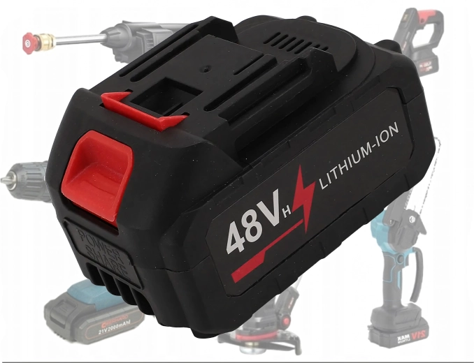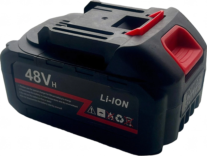 Ova univerzalna 48 V Li-ion baterija s velikim kapacitetom 6000 mAh pouzdano napaja vaš bežični alat – od bušilica i udarnih odvijača do mini lančanih pila i akumulatorskih tlačnih perača. Robusno kućište s ventilacijskim otvorima i kliznom bravom osigurava sigurno i brzo postavljanje na kompatibilne alate i punjače.