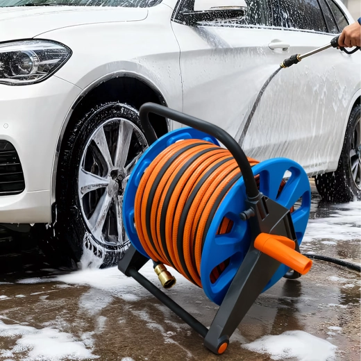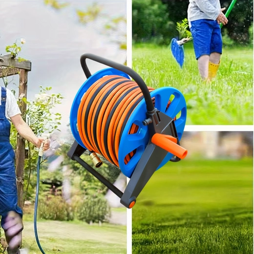 Kapacitet do 50–60 metara standardnog vrtnog crijeva pokriva i veće površine. Kompaktne dimenzije i mala masa olakšavaju prenošenje i skladištenje u garaži ili vrtnom kućici. Praktičan izbor za svakodnevnu upotrebu u vrtu, na terasi i u radionici.