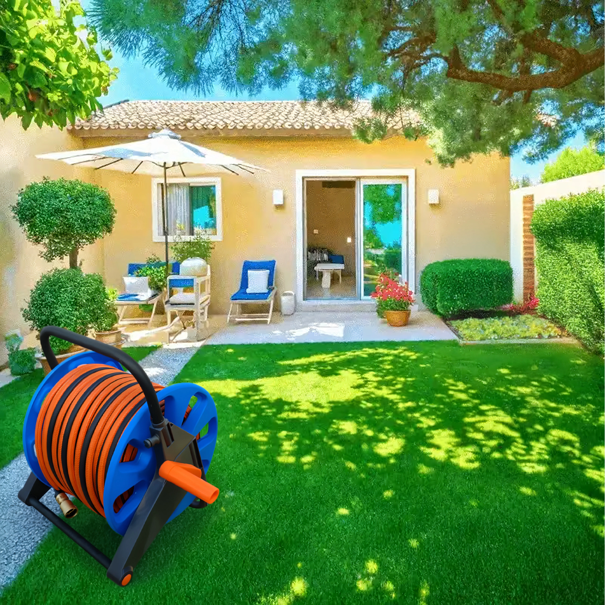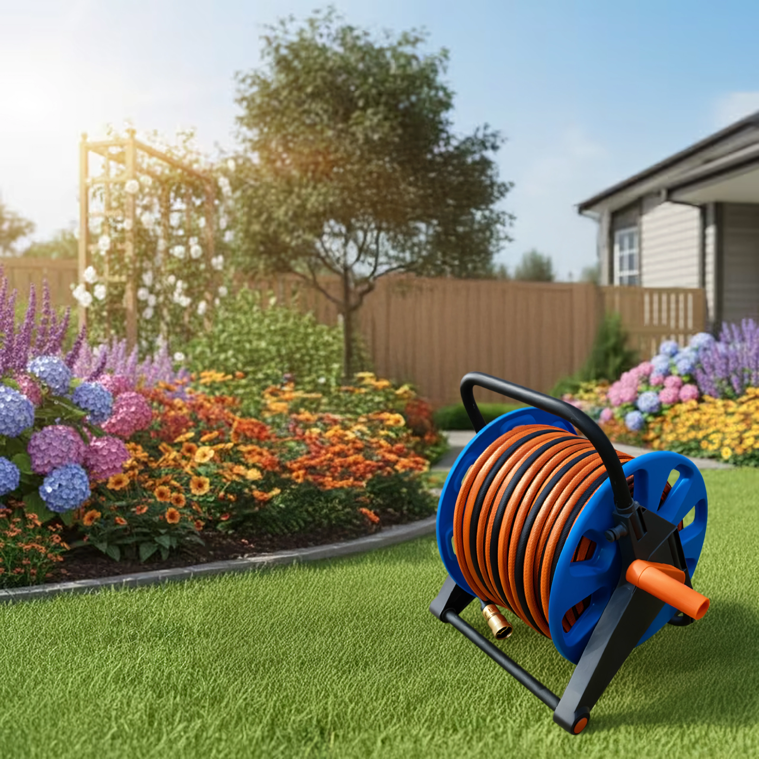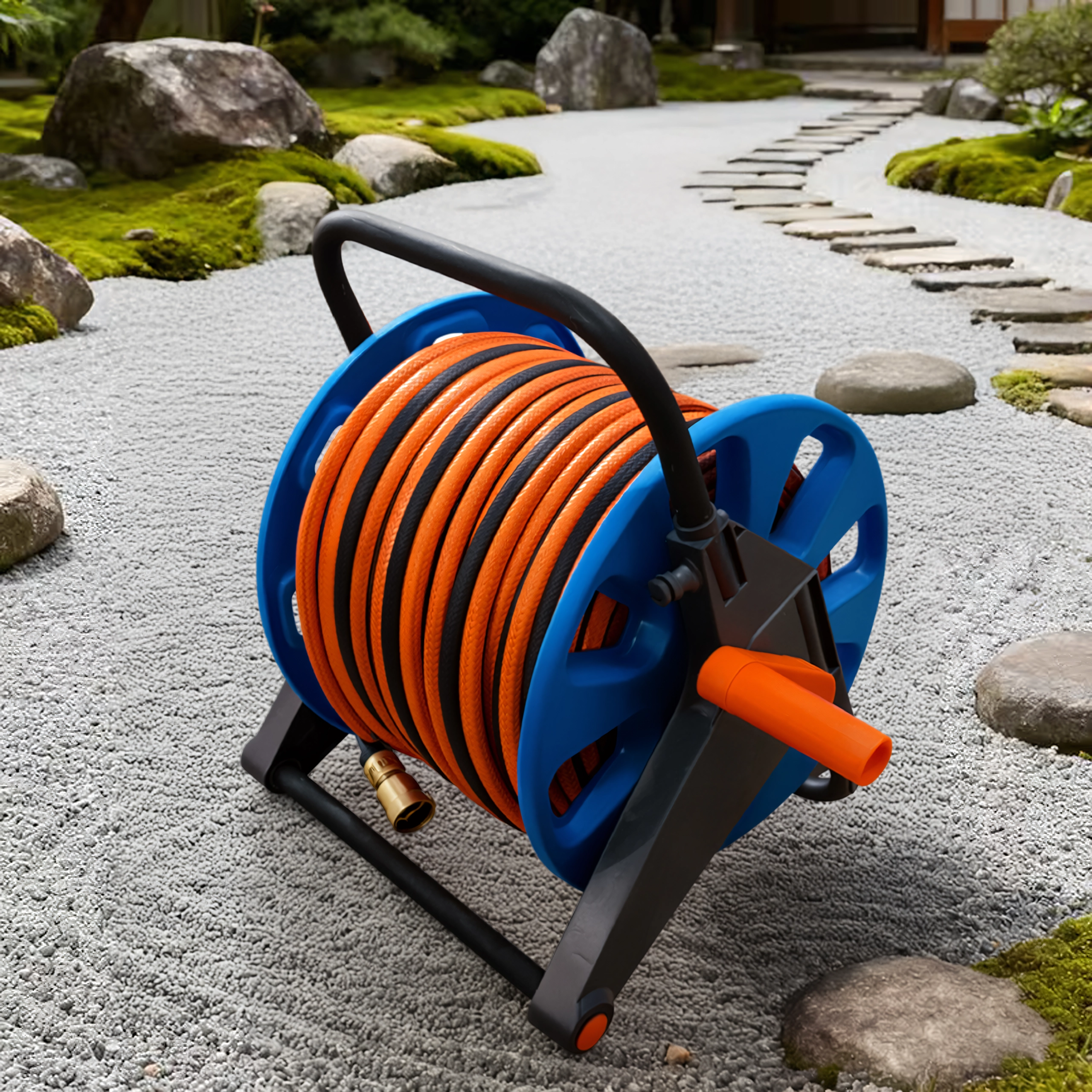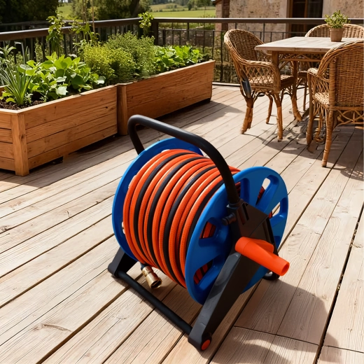 Bubanj prima do 50–60 m vrtnog crijeva, idealno za veće vrtove i dulji doseg.