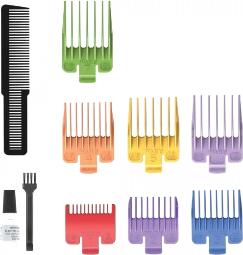 Za točnu duljinu brine se podesiva poluga s tri položaja (0,8 mm, 1,5 mm, 1,8 mm) i 7 obojenih češljeva-nastavaka (3, 6, 10, 13, 16, 19, 22 mm). Zahvaljujući snažnom, visokookretnom motoru, aparat je idealan za kratku, glatku dlaku i nježne korekcije srednje duge dlake.