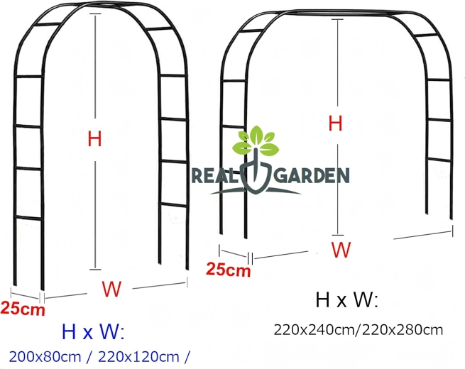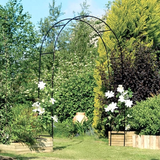Elegantni vrtni luk od izdržljivog metala stvara dojmljiv ulaz u vrt i pruža čvrstu potporu za ruže, vinovu lozu i klematis. Jednostavna montaža od cijevnih elemenata i univerzalan dizajn za dekoracije, svadbene portale i penjačice.