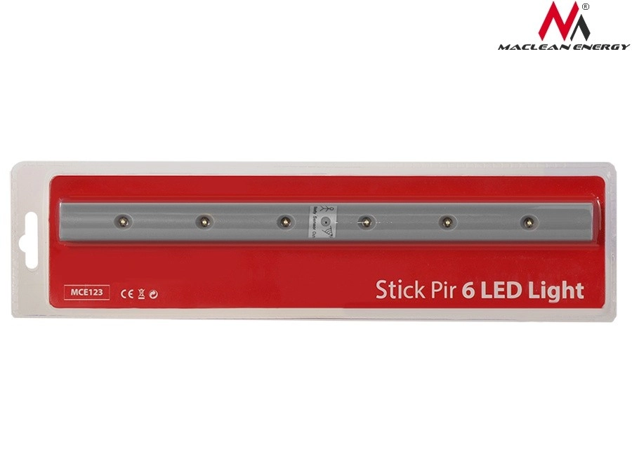 Podložna LED lampa MACLEAN ENERGY idealna je za kuhinju, ostavu ili garderobu. Zahvaljujući integriranom PIR senzoru pokreta svjetlo se automatski uključuje kada se približite te pruža ugodno osvjetljenje bez potrebe za kablovima. Kompaktno izduženo kućište s 6 LED osigurava ravnomjerno svjetlo intenziteta 50 lumena.