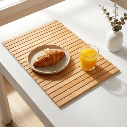 Bambus je tvrd, čvrst i jednostavan za održavanje. Podloga štiti od topline, vlage i ogrebotina, a pritom izgleda elegantno.