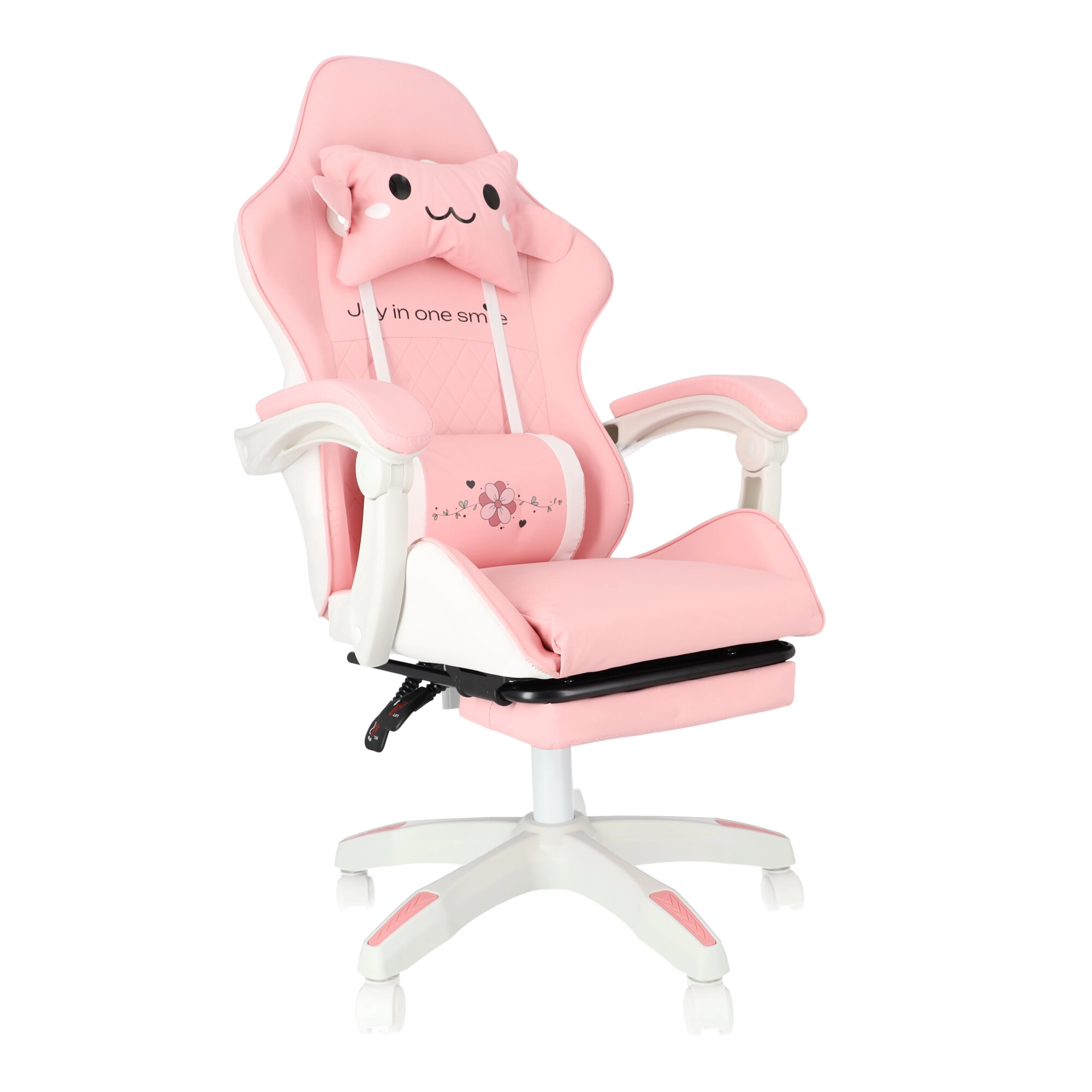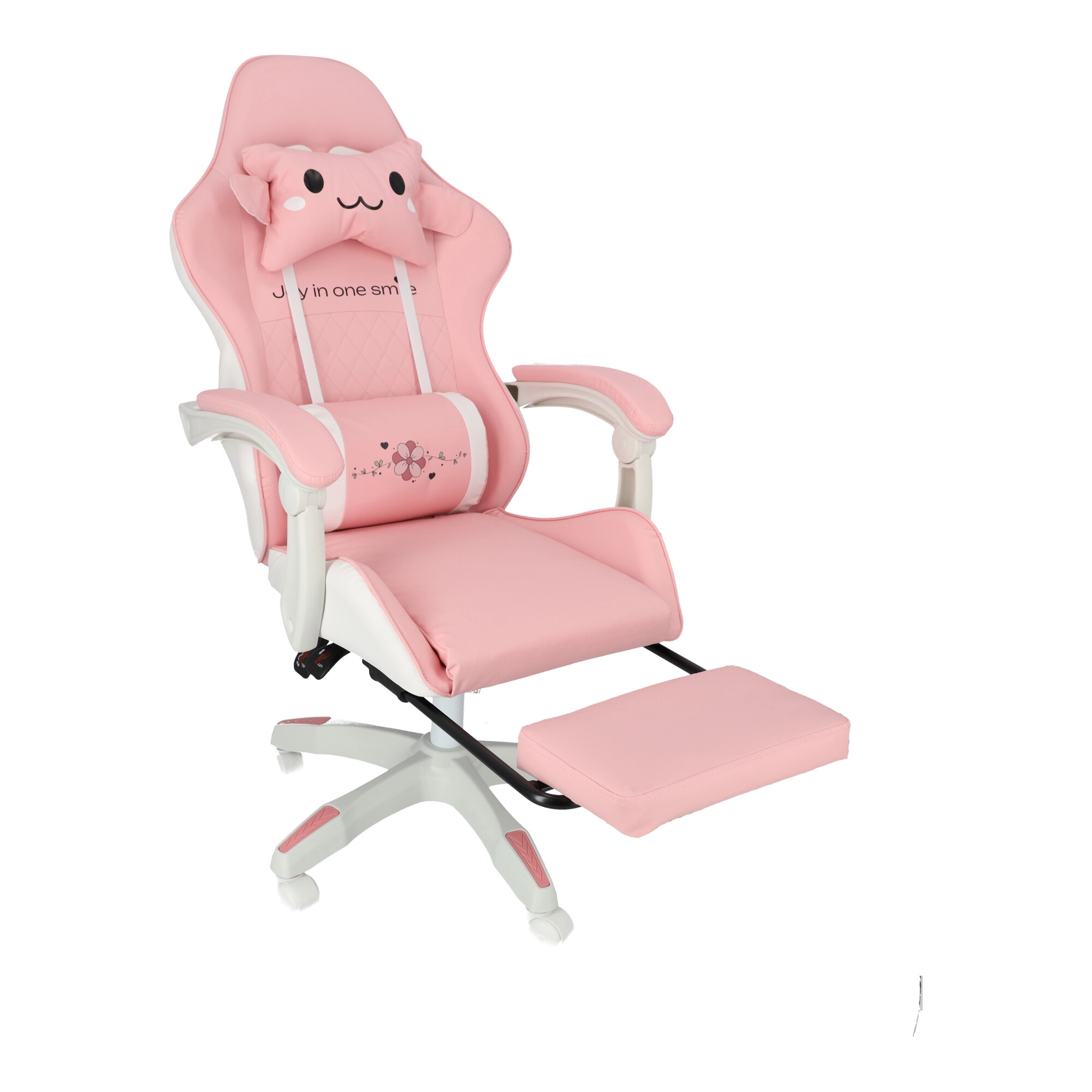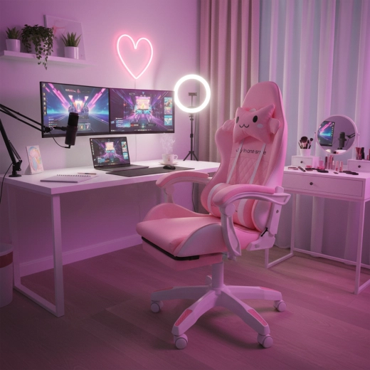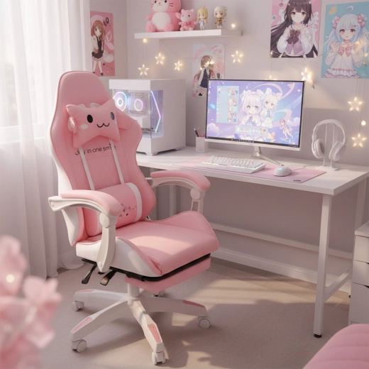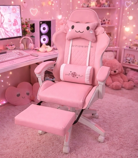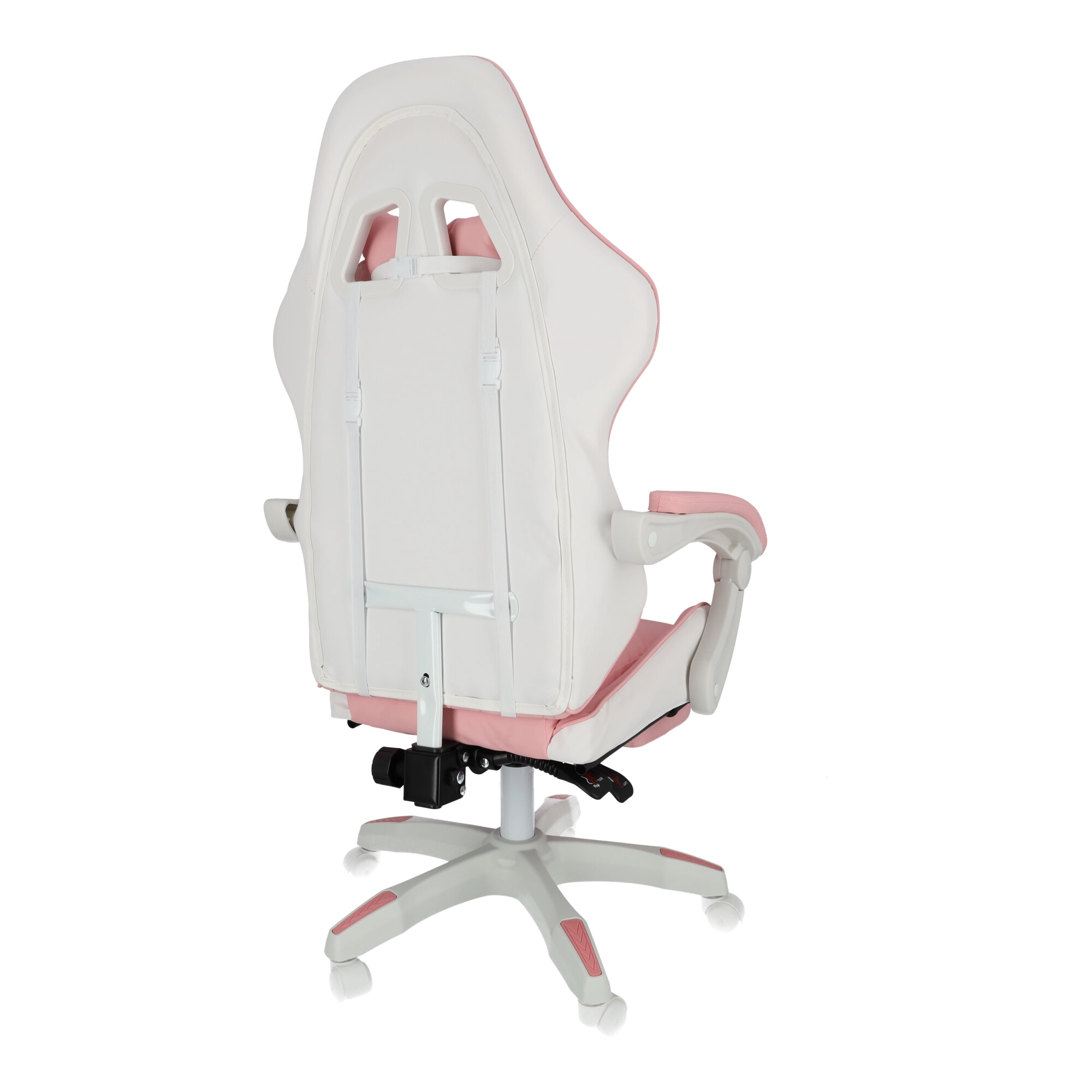 Ružičasta dječja gaming i uredska stolica spaja ergonomski komfor, podesivu visinu i izvlačivi oslonac za noge za brzi odmor. Kacigasto sjedalo sa stabilnom potporom leđa, mekim naslonima za ruke s pjenom i glatkim okretanjem od 360° s kotačićima olakšava učenje i igru. U kompletu su jastučići za vrat i lumbalni dio za zdravije sjedenje u dječjoj sobi.