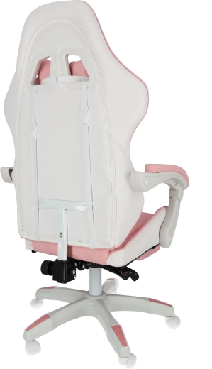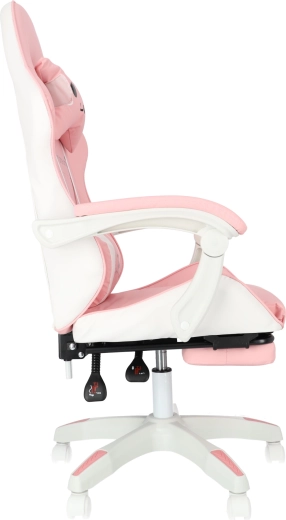 Komforu doprinose podstavljeni nasloni za ruke i izvlačivi oslonac za noge, koji u trenu pretvara radni položaj u opuštajući. Robusna baza s mehanizmom okretanja 360° i kotačićima omogućuje lako kretanje po sobi. Stilsko ružičasto-bijelo izvedenje uklapa se u moderne dječje i učeničke sobe.