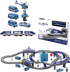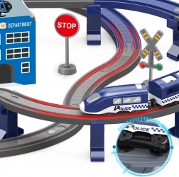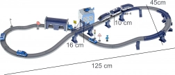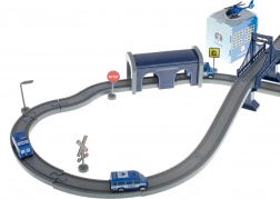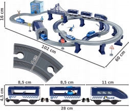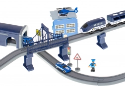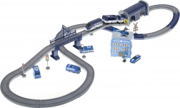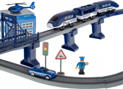 Ova detaljno izrađena policijska željeznička pruga spaja omiljene dječje svjetove – vlakove, aute, helikoptere i policiju. Zahvaljujući bogatom setu dijelova možete složiti do 6 različitih varijanti pruga, uključujući dvorazinsko vođenje, most i tunel. Magnetske spojnice vagona olakšavaju rukovanje, a lokomotiva s pogonom osigurava glatku vožnju.