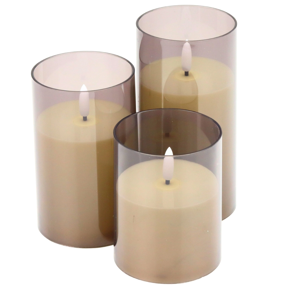 Elegantni set od 3 LED svijeće različitih visina stvara ugodnu, toplu atmosferu bez dima i otvorenog plamena. Zahvaljujući realističnom efektu plamena, timeru i regulaciji svjetline na daljinskom upravljaču, idealne su za dnevni boravak, spavaću sobu i svečani stol. Sigurno rješenje za domove s djecom i kućnim ljubimcima.