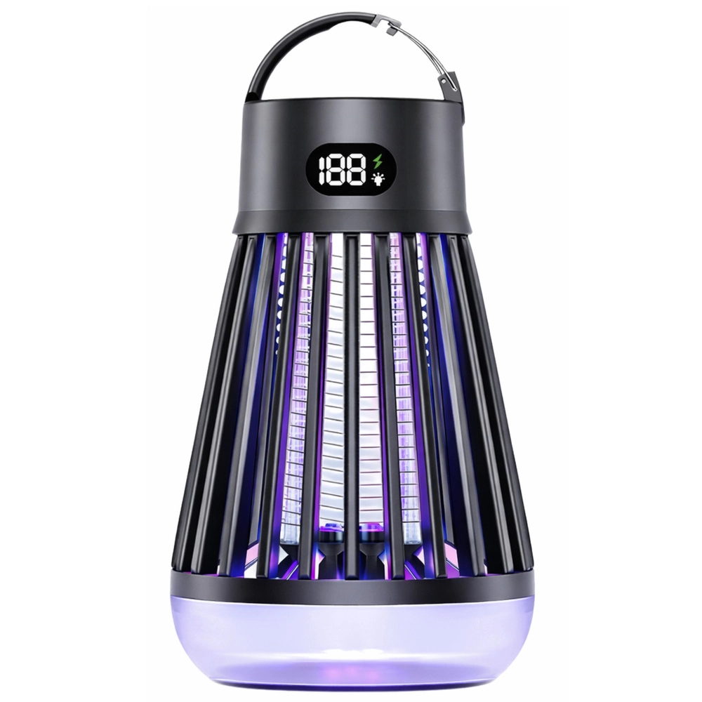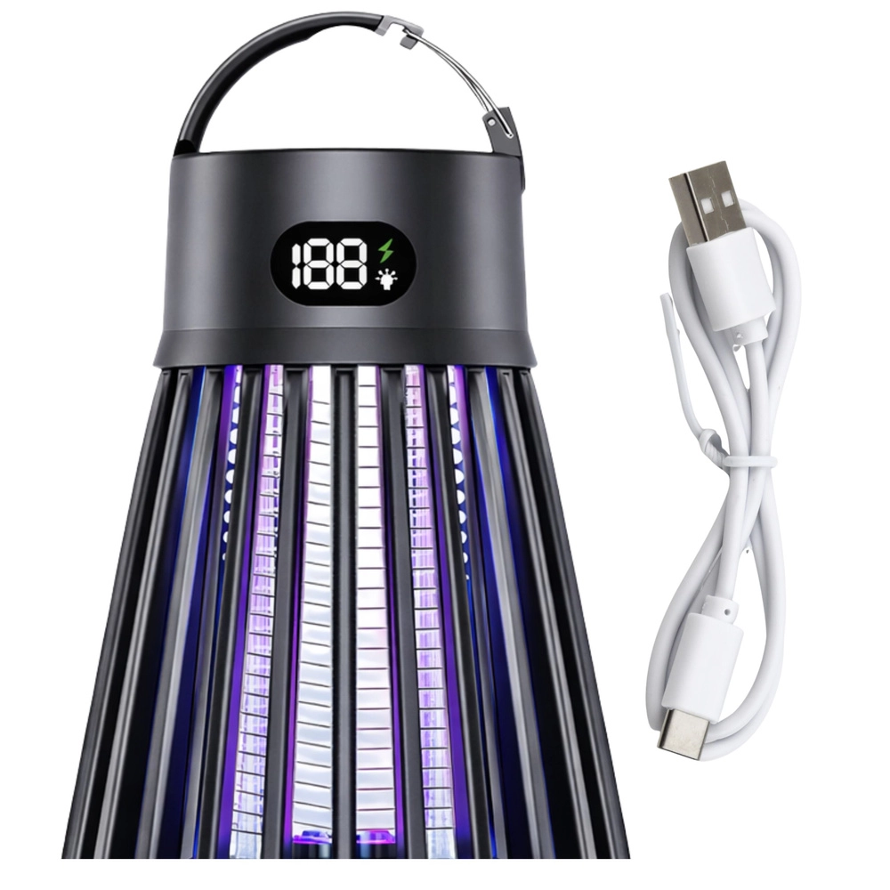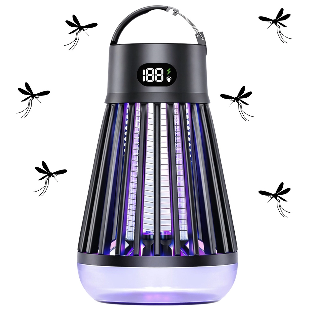 Praktična i moderna lampa protiv komaraca i letećih insekata kombinira UV privlačenje (365/395/410 nm) i električnu mrežicu 2000 V za brzo uklanjanje. Zahvaljujući integriranoj LED lampi, punjivoj bateriji 2000 mAh do 9 sati rada i USB‑C punjenju idealna je za dom, terasu, balkon i kampiranje. Bez kemikalija, s zaštitnom mrežicom i preglednim digitalnim zaslonom stanja.