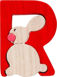 Drveno slovo R sa zekićem pomaže djeci na zabavan način svladati osnove abecede. Može se koristiti kao dio slagalice, za sastavljanje imena ili kao dekoracija na zidu ili namještaju (uz upotrebu obostrane ljepljive trake). Masivna izvedba osigurava dug vijek trajanja i sigurno igranje.