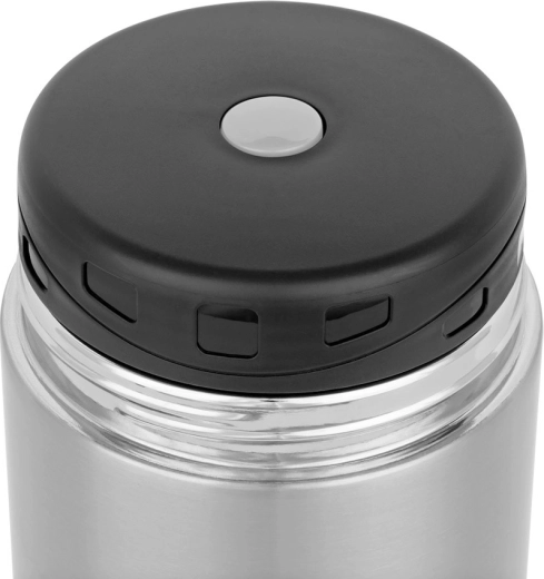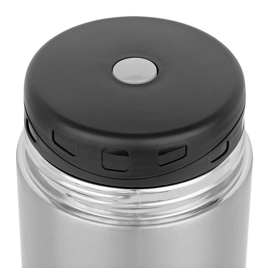Širok otvor omogućuje lako punjenje, grabljenje i čišćenje. Čvrsta konstrukcija od nehrđajućeg čelika otporna je na udarce i mirise, a nepropusni poklopac sprječava curenje tijekom prenošenja u torbi ili ruksaku.