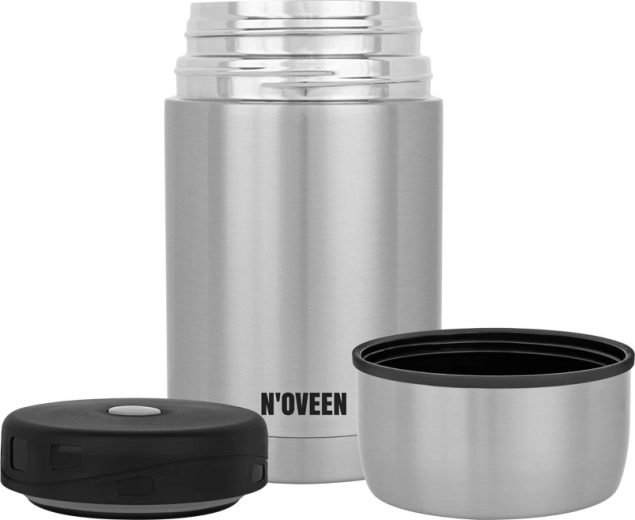 Termos za hranu N’OVEEN od nehrđajućeg čelika zapremine 800 ml idealan je za svakodnevno nošenje ručkova, juha i hladnih salata. Dvostruka stijenka s vakuumskom izolacijom pouzdano zadržava temperaturu, bilo da trebate toplinu zimi ili osvježavajuću hladnoću ljeti.