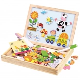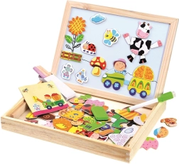Svi ovi kreativni alati i dijelovi pohranjeni su u drvenoj kutiji koja je lako prenosiva. Djeca će se s ovom pločom na temu farme zabavljati dugi sati i razvijati svoju maštu i vještine.