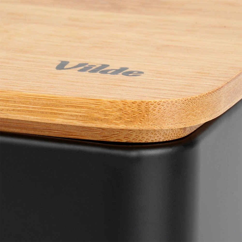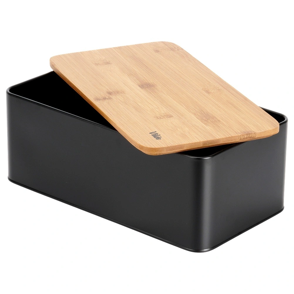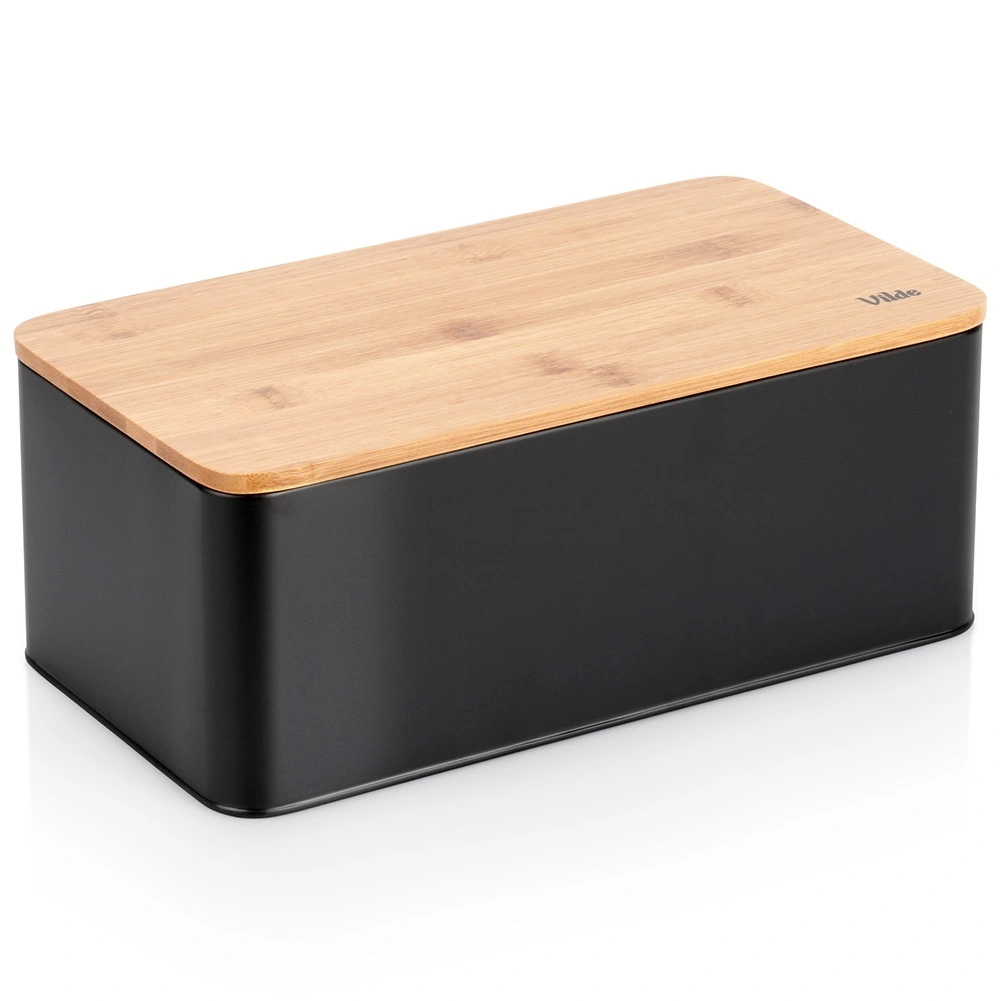 Metalna kutija za kruh s bambusnim poklopcem, crna 33 × 18 × 13 cm