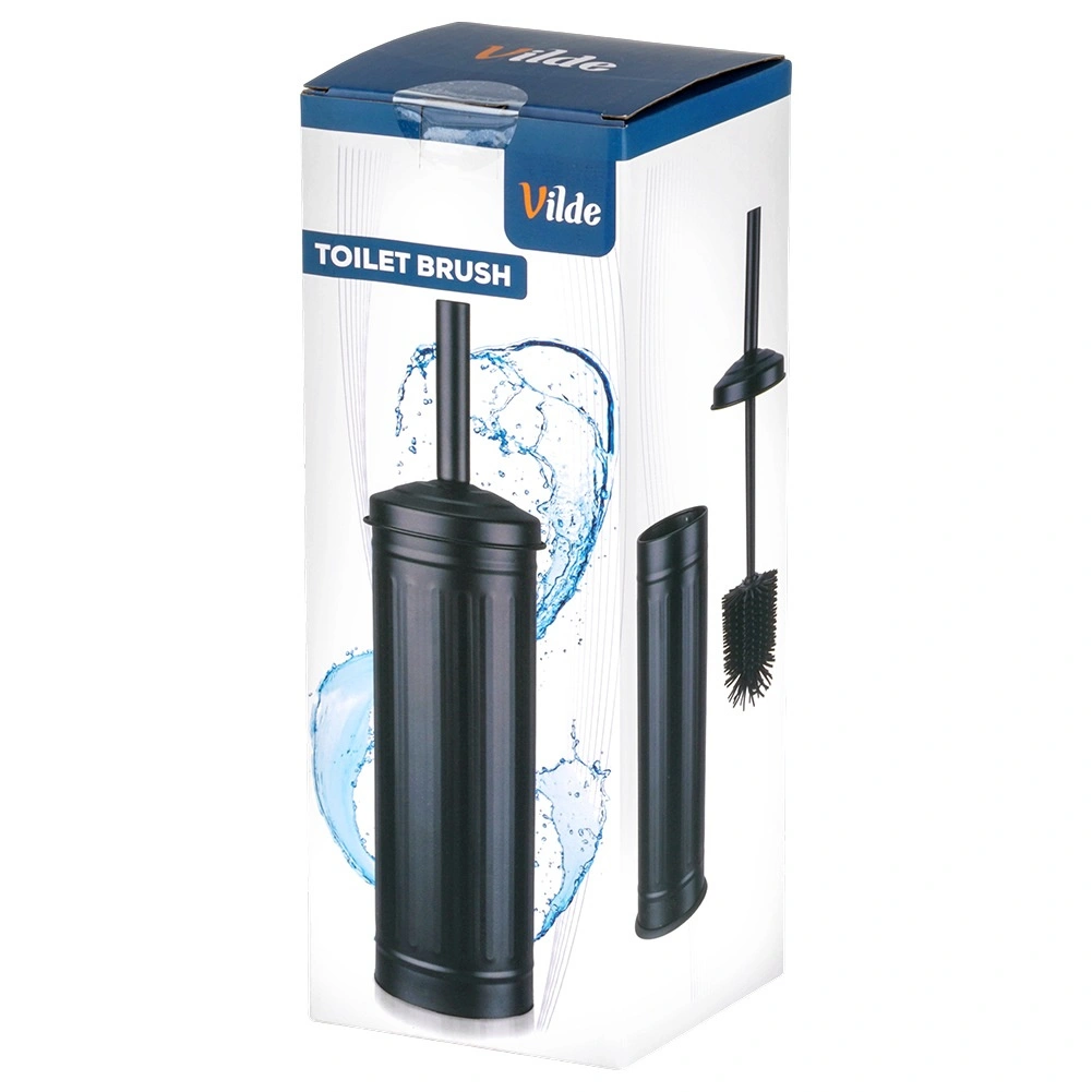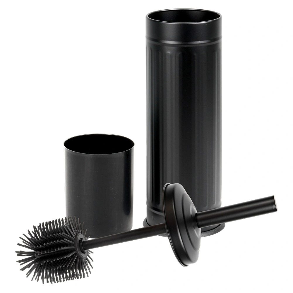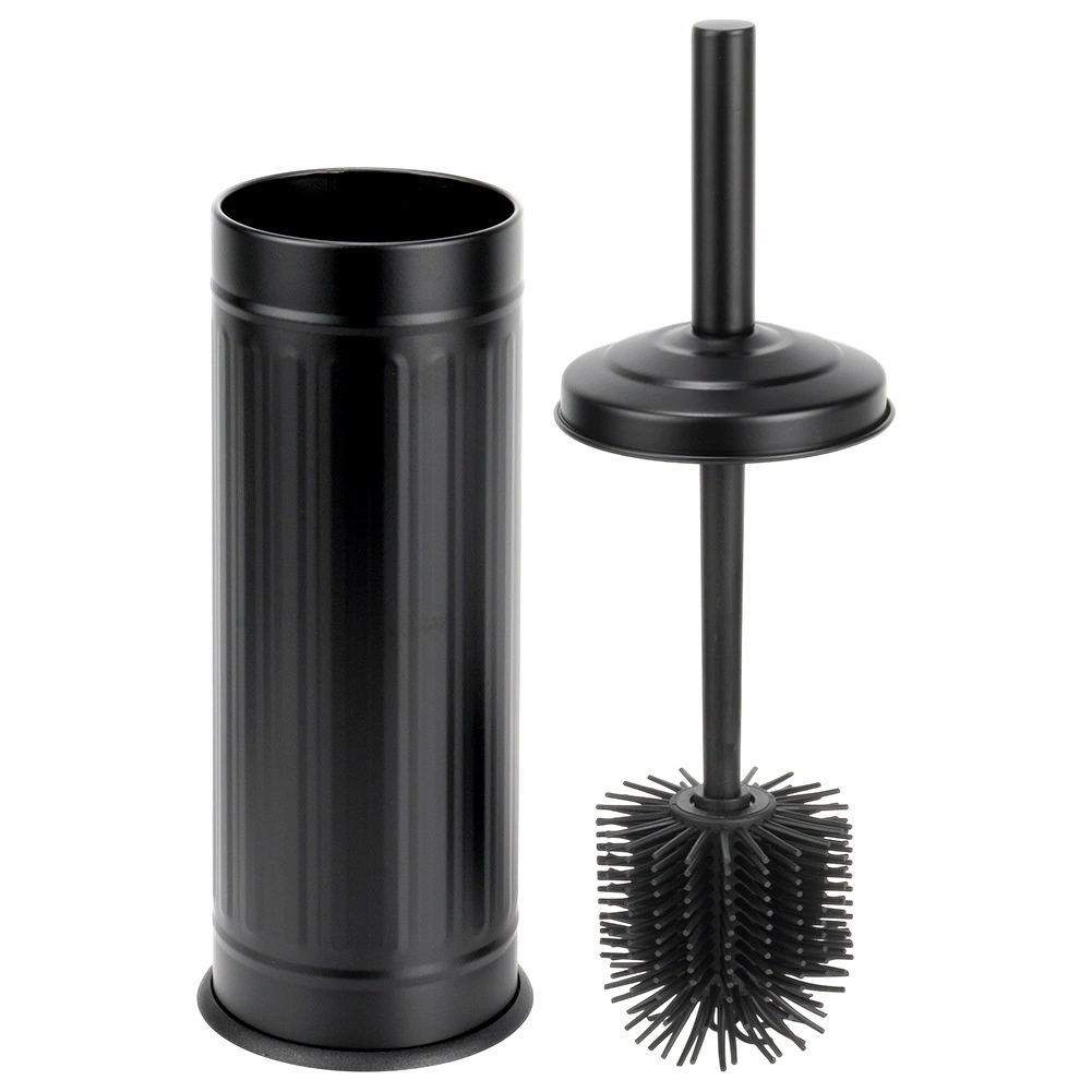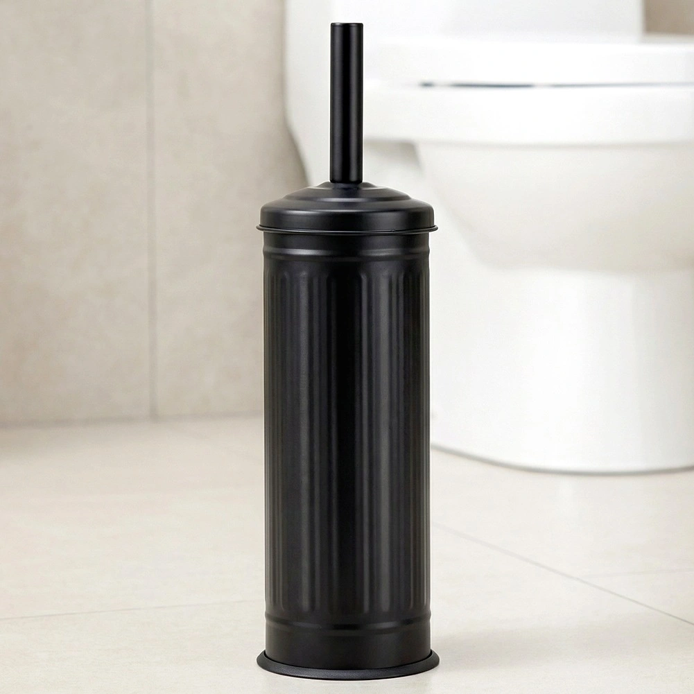 Stilizirani mat crni stalak s poklopcem skriva četku, zadržava kapljice i održava pod suh i čist.