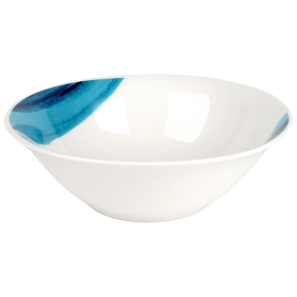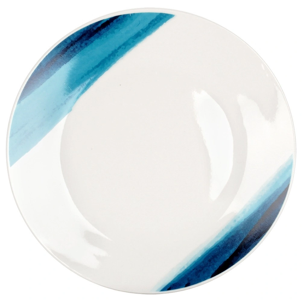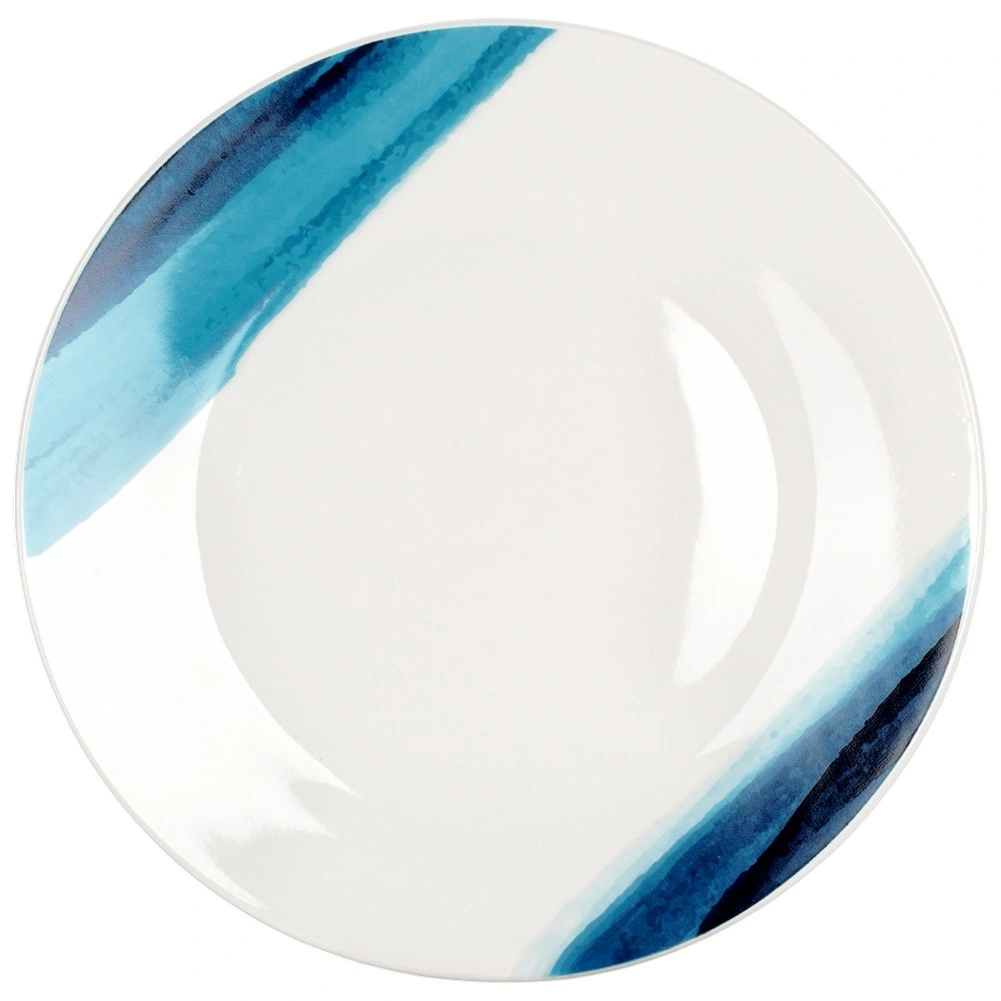 Bijela osnova s plavim potezima kista djeluje svježe i bezvremenski. Lako se kombinira s ostalim bijelim ili kolorističkim komadima na stolu.
